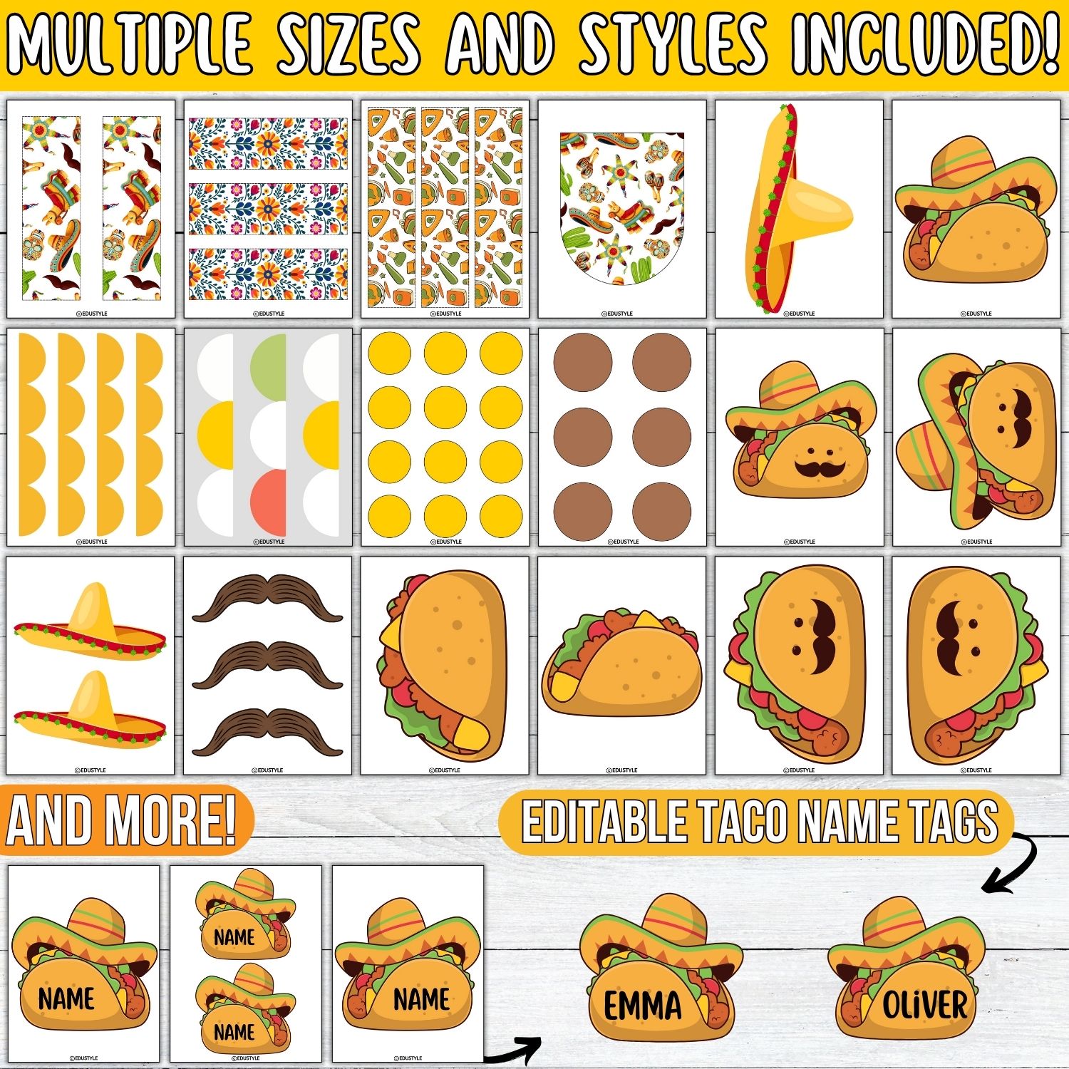 - Editable Taco Nametags: Easily customizable with student names.