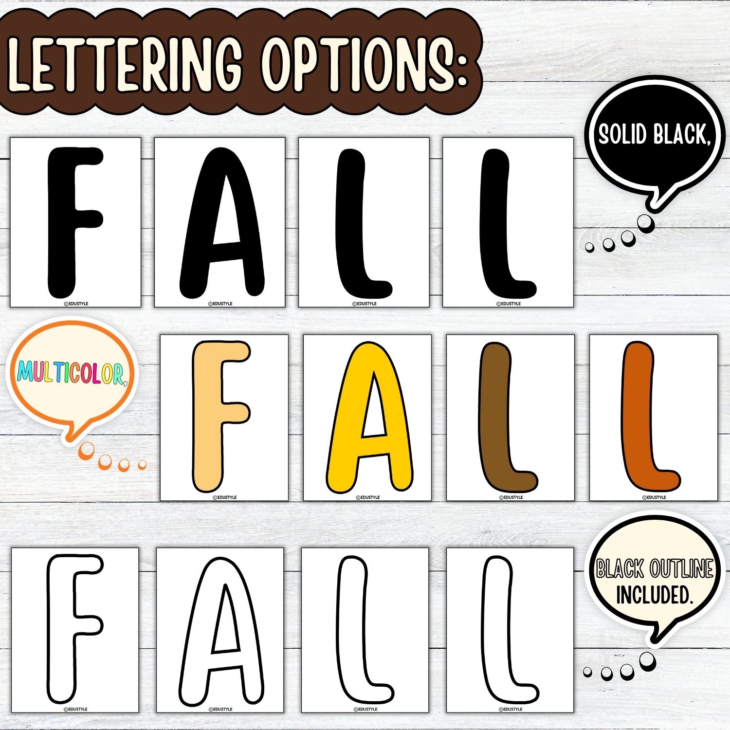- Decorative lettering options (solid black, multicolor, black outline) for flexible display.