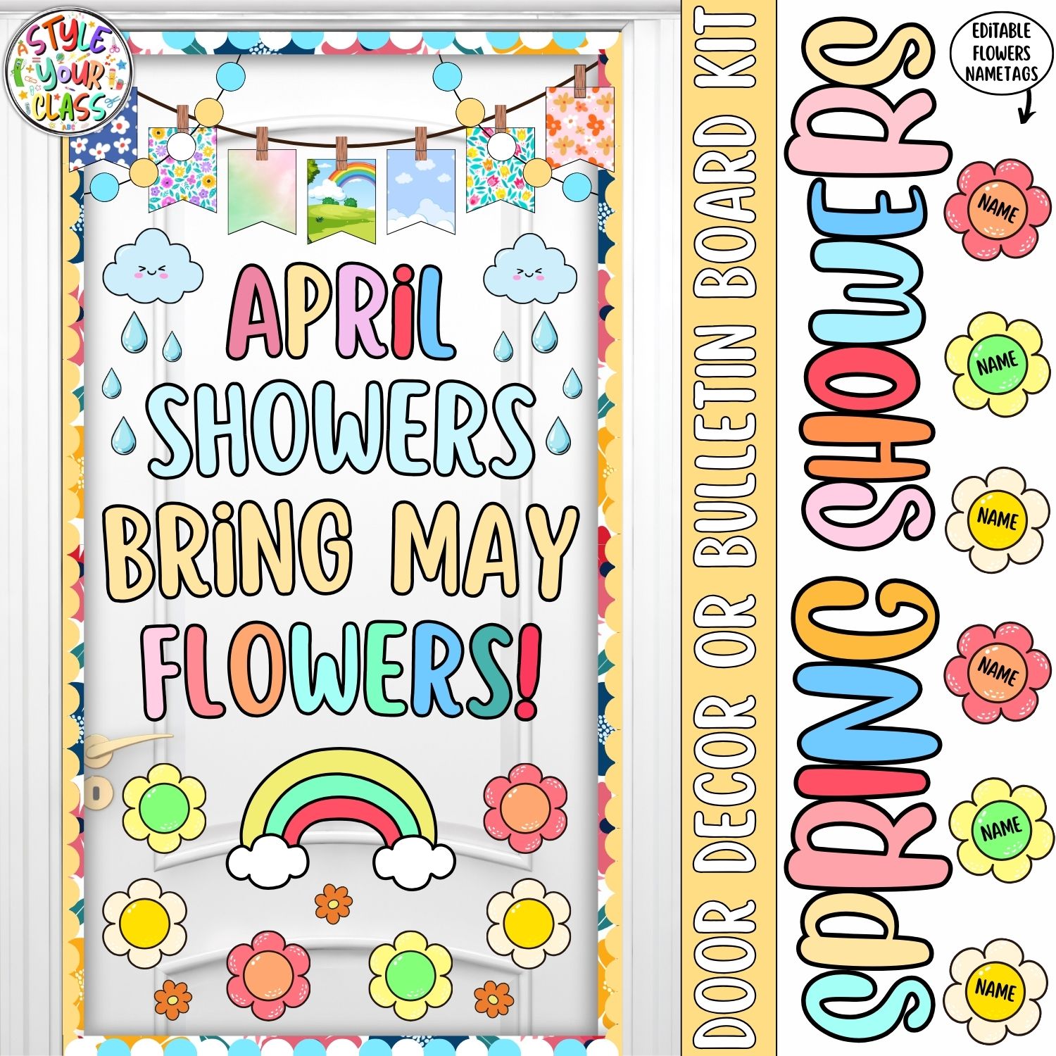 Welcome spring into your classroom with this bright and cheerful April Bulletin Board or Door Decor Set 🌈🌸