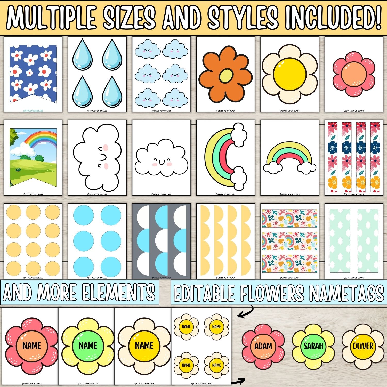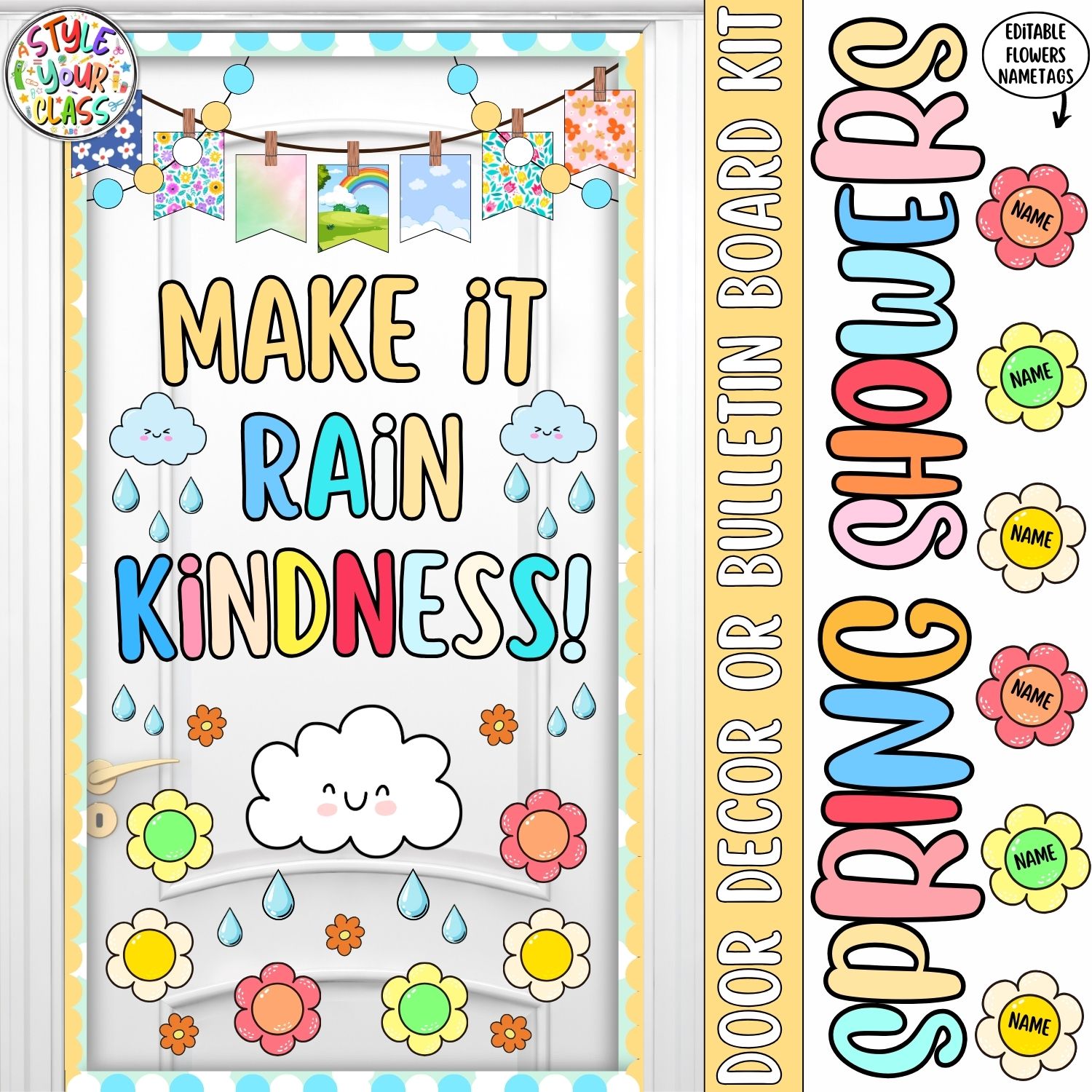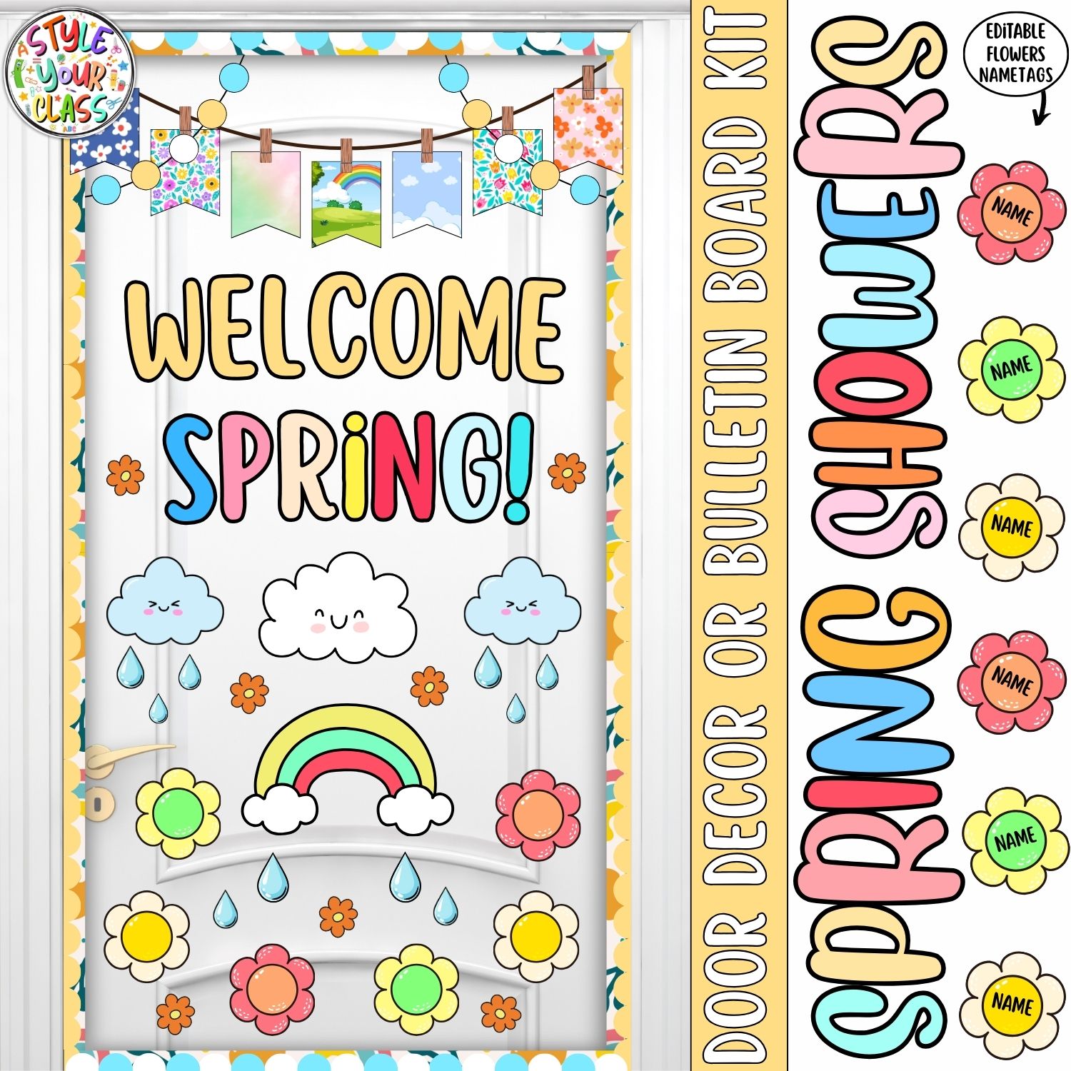 Featuring multiple positive spring-themed sayings and editable flower name tags, this set is ideal for bulletin boards, classroom doors, or hallway displays that feel warm, welcoming, and student-centered.