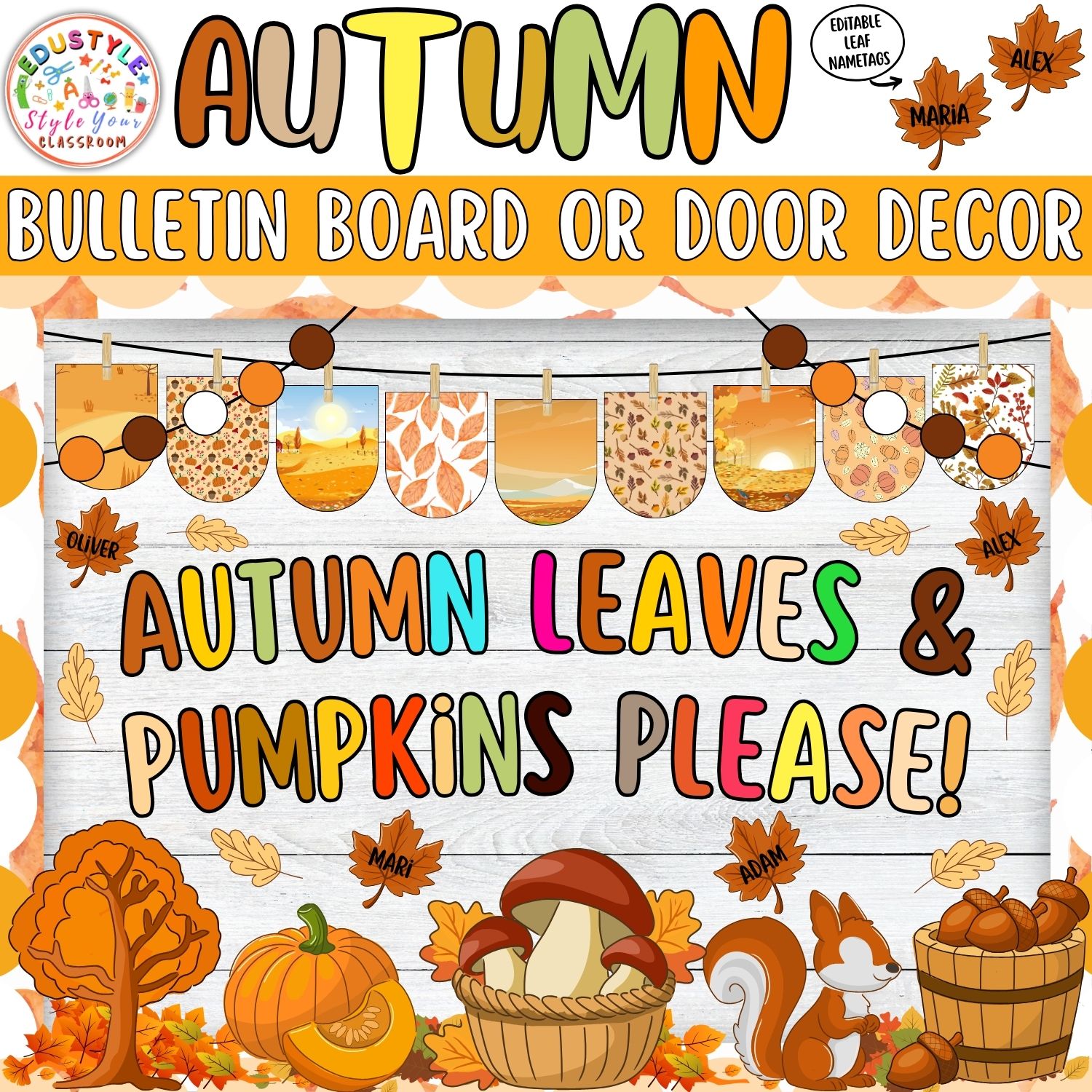 Create an inviting and festive classroom decoration that your students will adore! Ideal for educators looking to celebrate the autumn season, this kit effortlessly transforms any plain classroom into a vibrant space that inspires young learners. It’s the perfect way to transition your classroom decor from back to school to the cooler months of September and beyond!