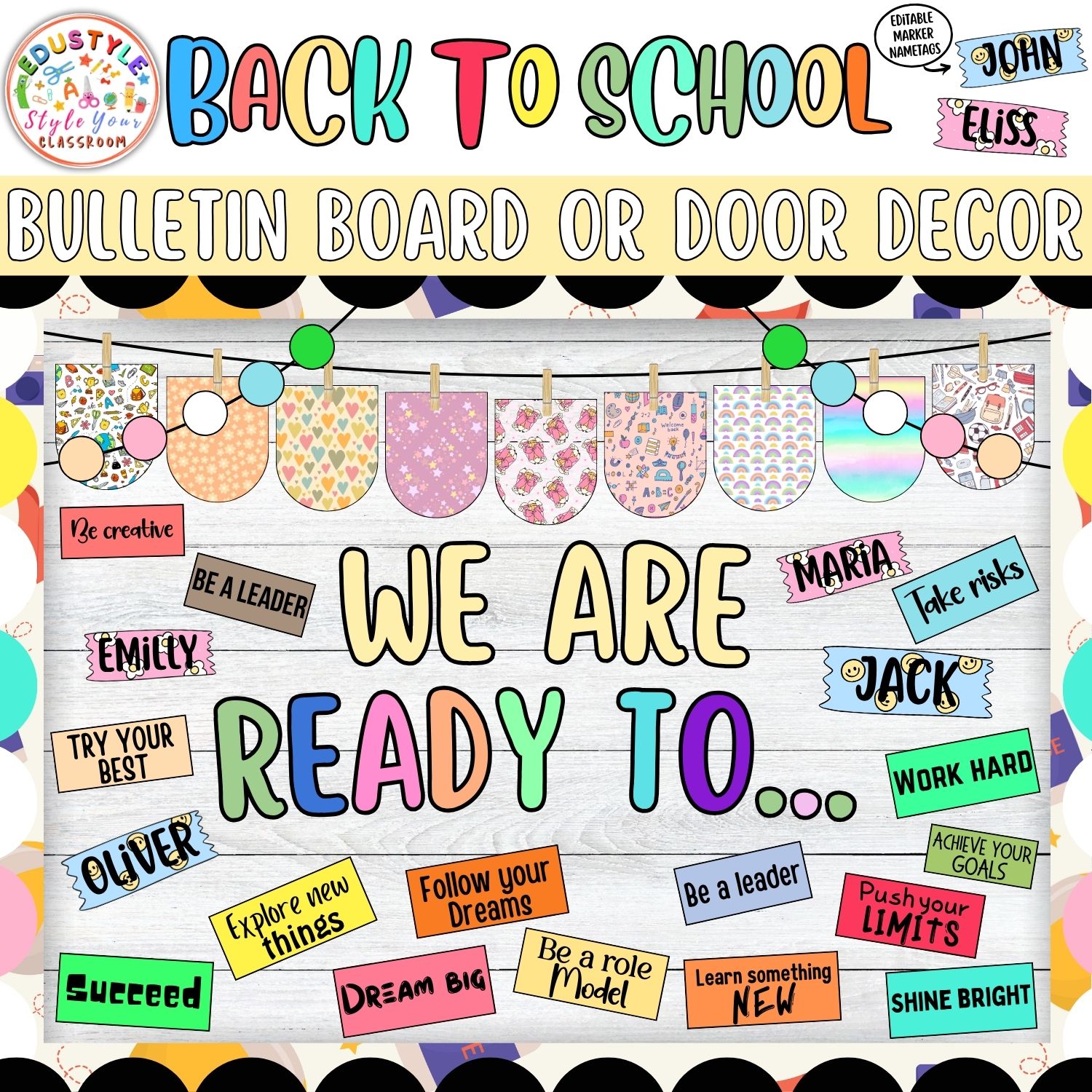This versatile Back to School decor kit is perfect for teachers who want to create a positive and engaging learning environment from day one. Easy to use, fully customizable, and designed to inspire students to achieve their very best!