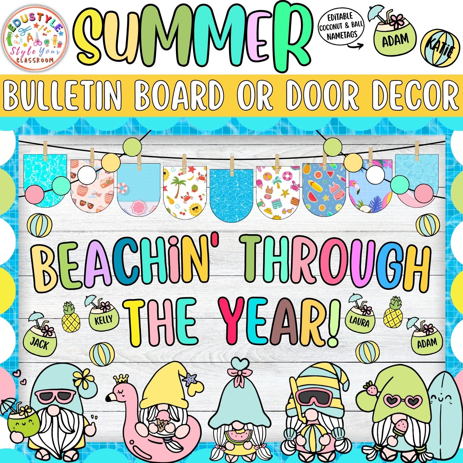 - Fun Decor Elements: Suns, Pineapples, Pool Floats, Sunglasses, and Gnomes