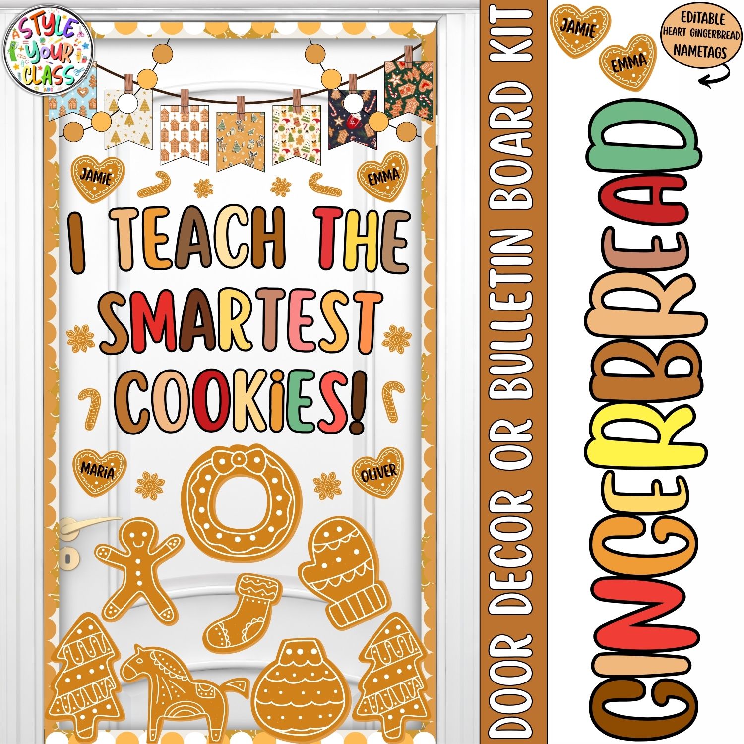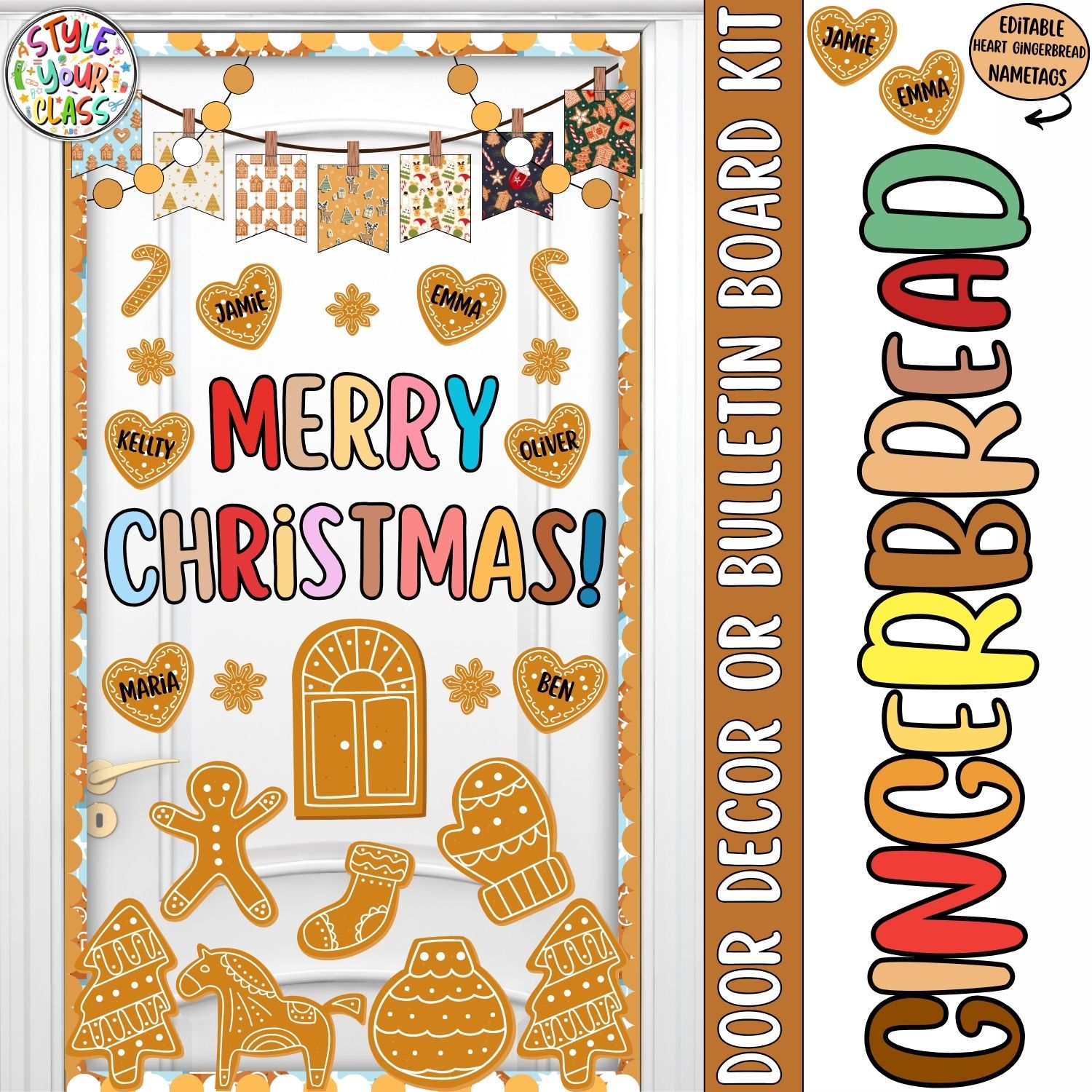 Featuring three interchangeable headers, cozy gingerbread graphics, and multiple lettering styles, this kit gives you everything you need to create a warm and welcoming holiday display your students will love. Perfect for doors, bulletin boards, or hallway decor all December long!