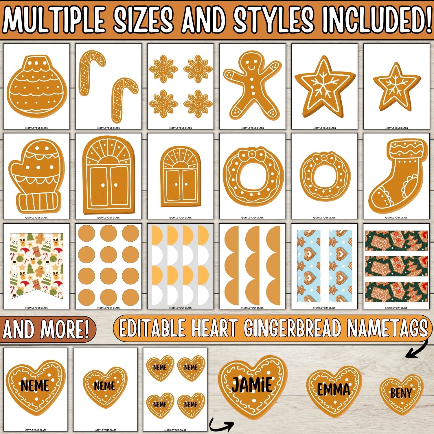 - Gingerbread heart name tags (multiple sizes)