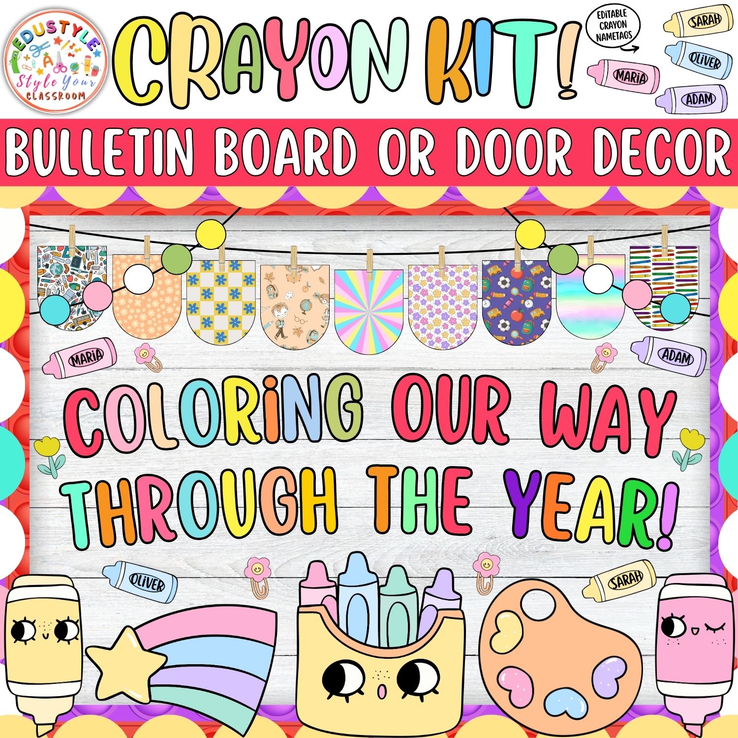 Thoughtfully designed with playful crayon-themed visuals, charming pastels, and inspiring messages, this set is ideal for teachers looking to foster a creative, engaging, and inclusive classroom community.
