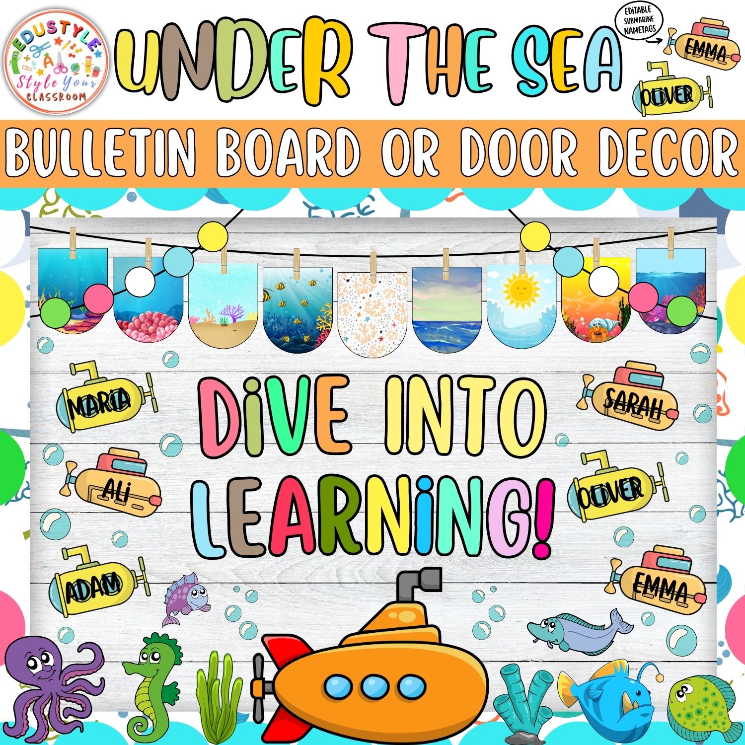 Dive deep into creative learning adventures with this engaging under-the-sea decor set! ✨