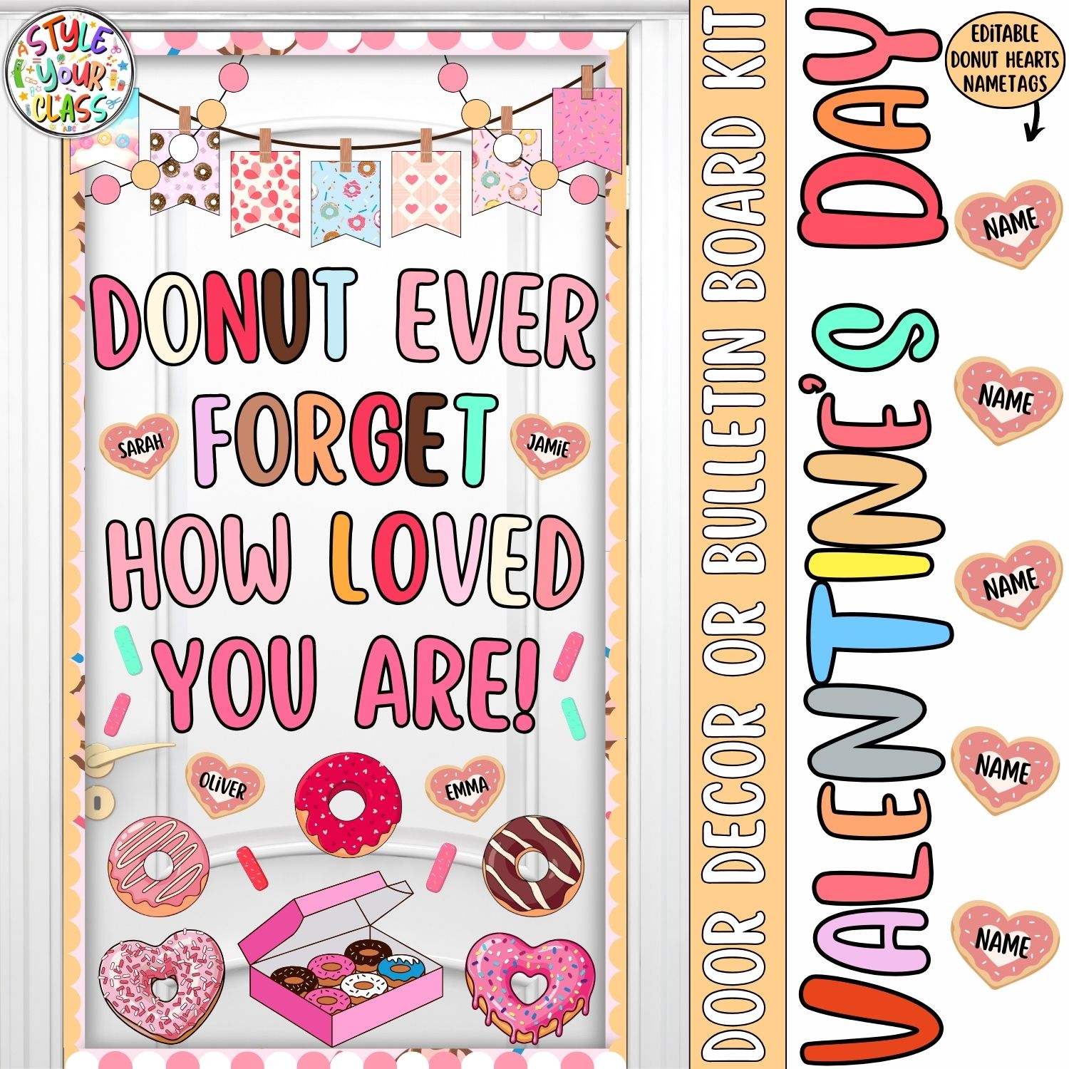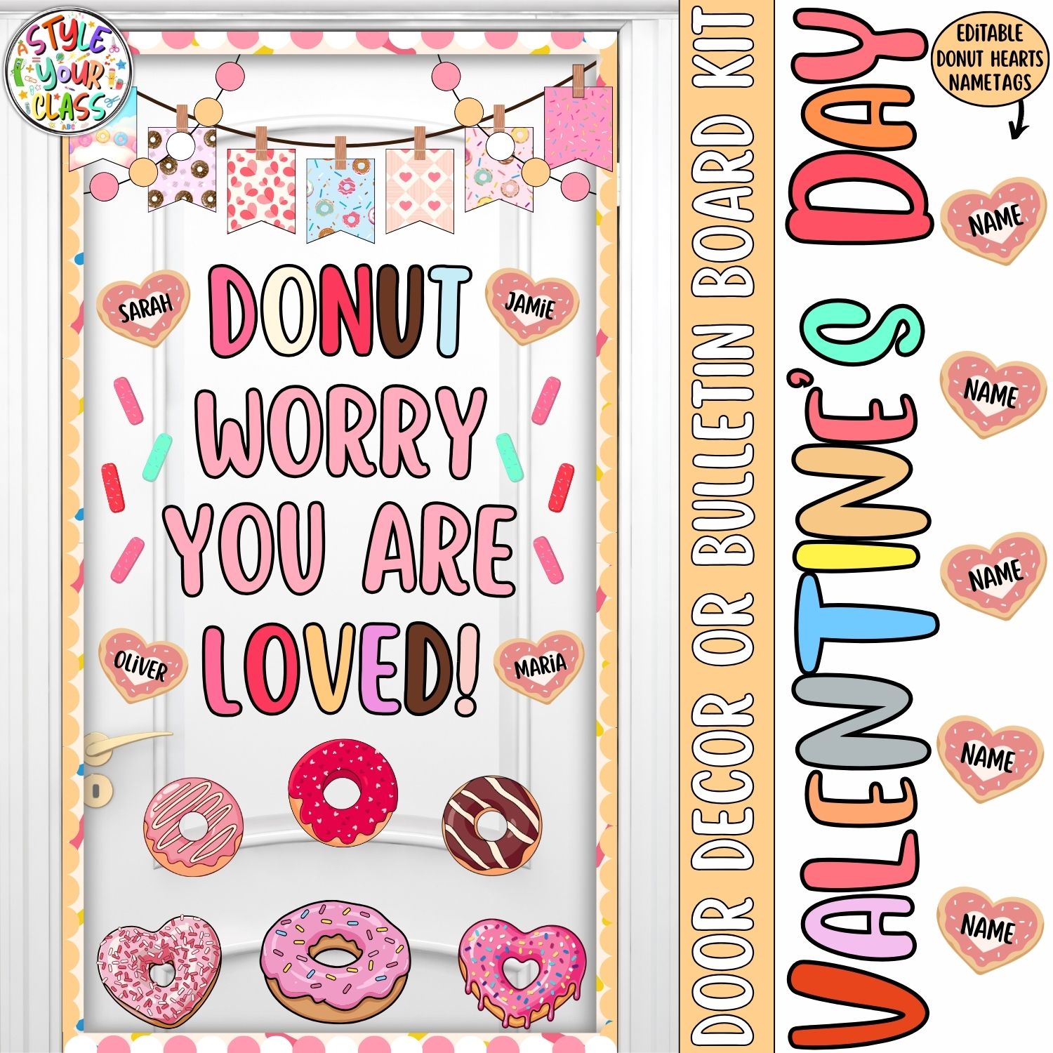 Great for Valentine’s Day classroom decor, February bulletin boards, kindness displays, and festive school hallway decorations 🍩💗
