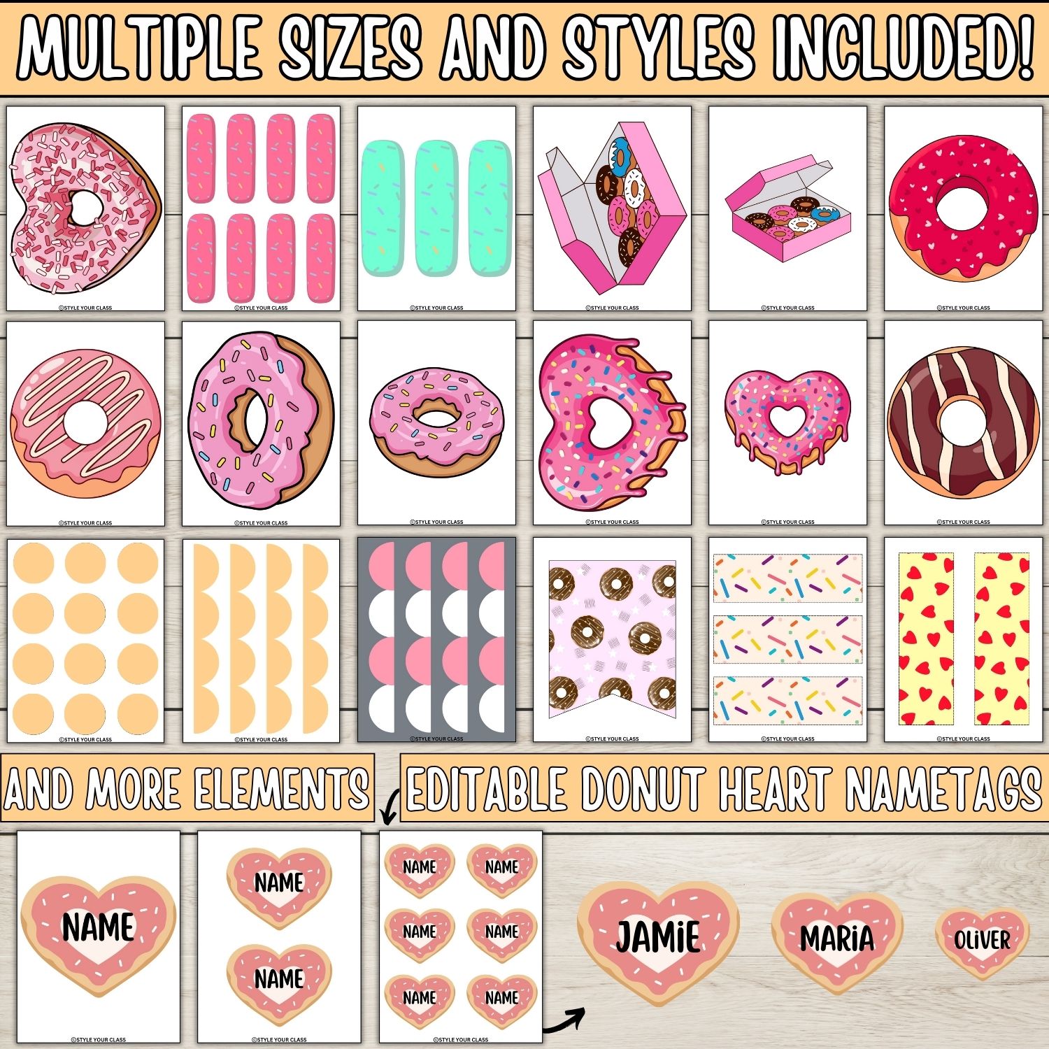 With multiple phrase options, adorable donut-themed decor, and editable donut heart name tags, this kit is ideal for bulletin boards, classroom doors, or hallway displays during Valentine’s Day.
