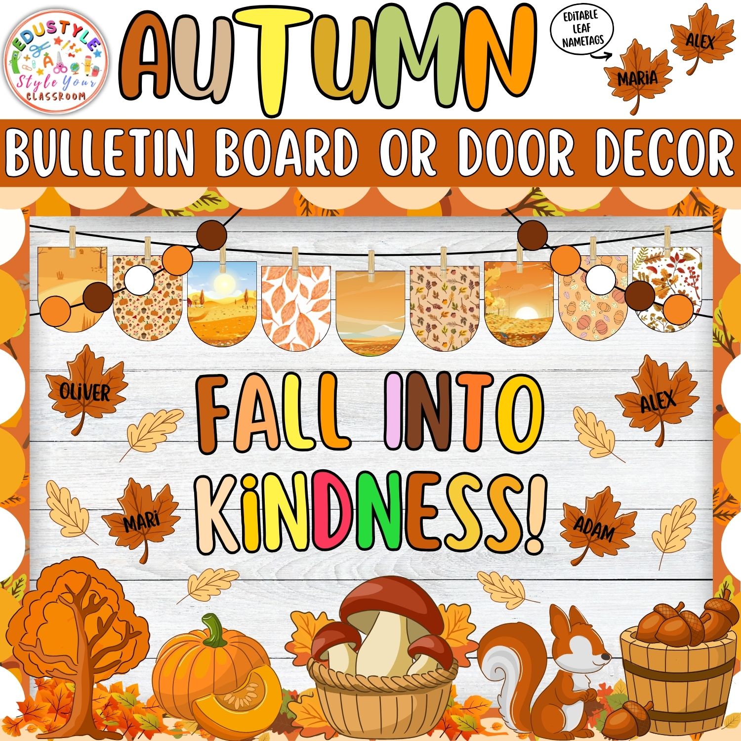 Fall Into Kindness!: Autumn and Pumpkin Bulletin Board or Door Decor Kit | FallFall Into Kindness!: Autumn and Pumpkin Bulletin Board or Door Decor Kit | Fall