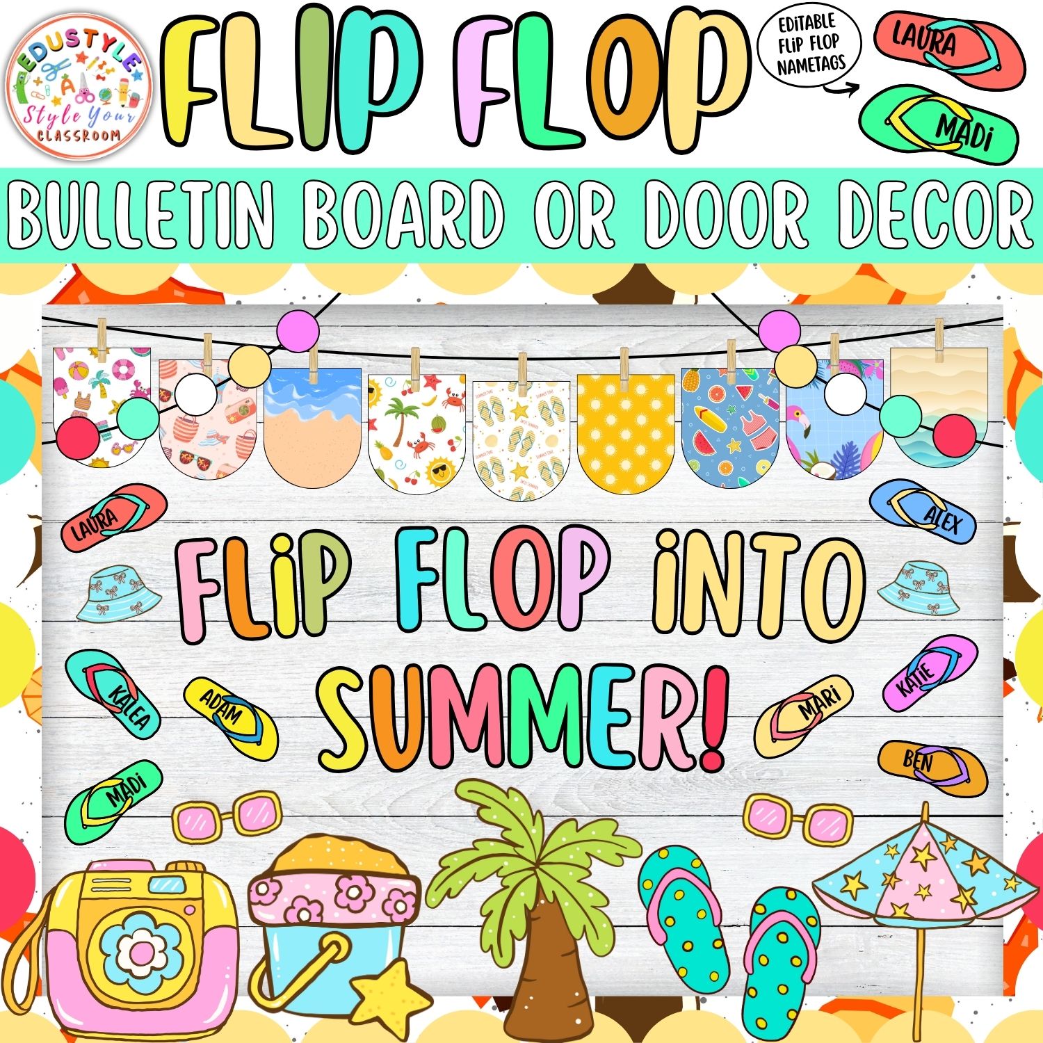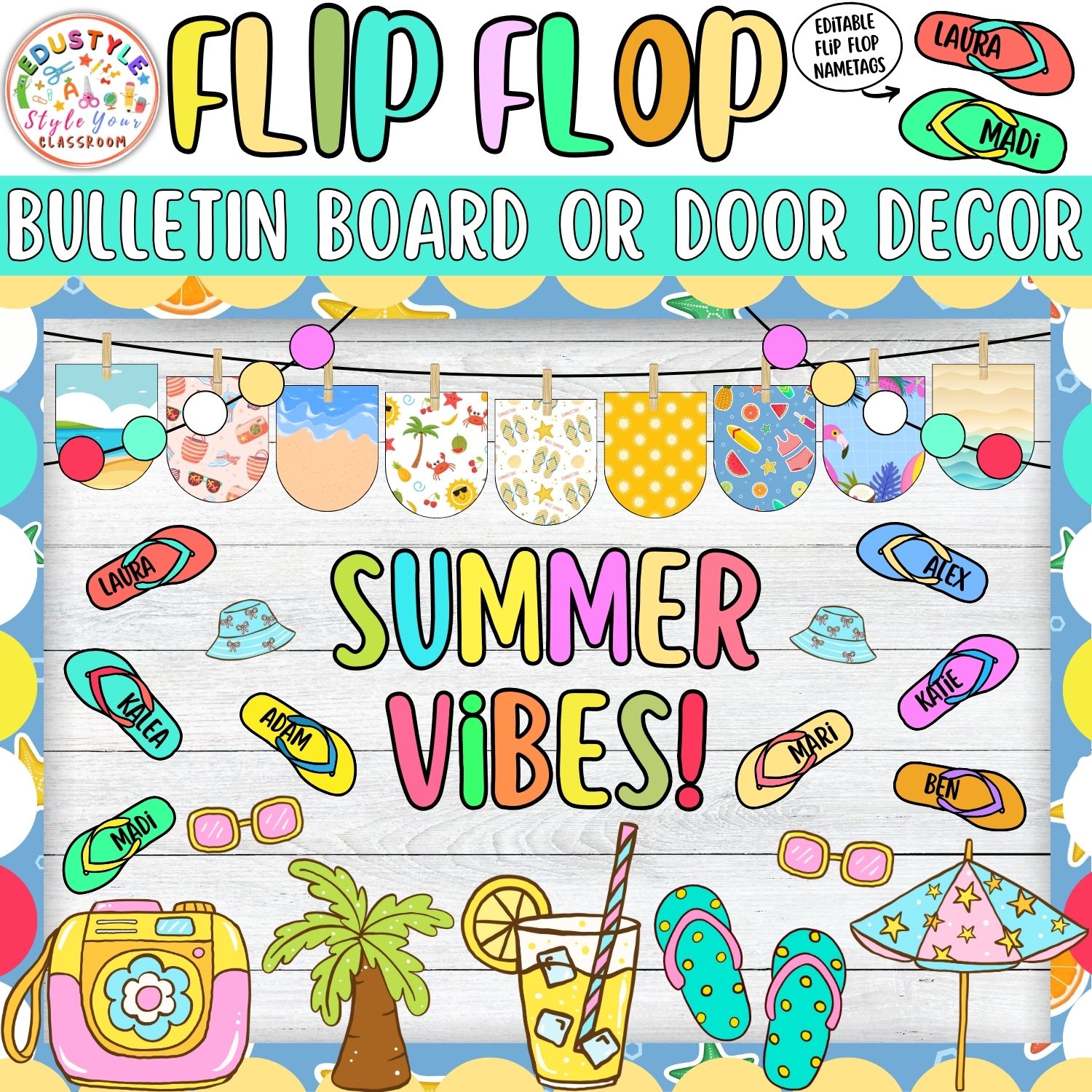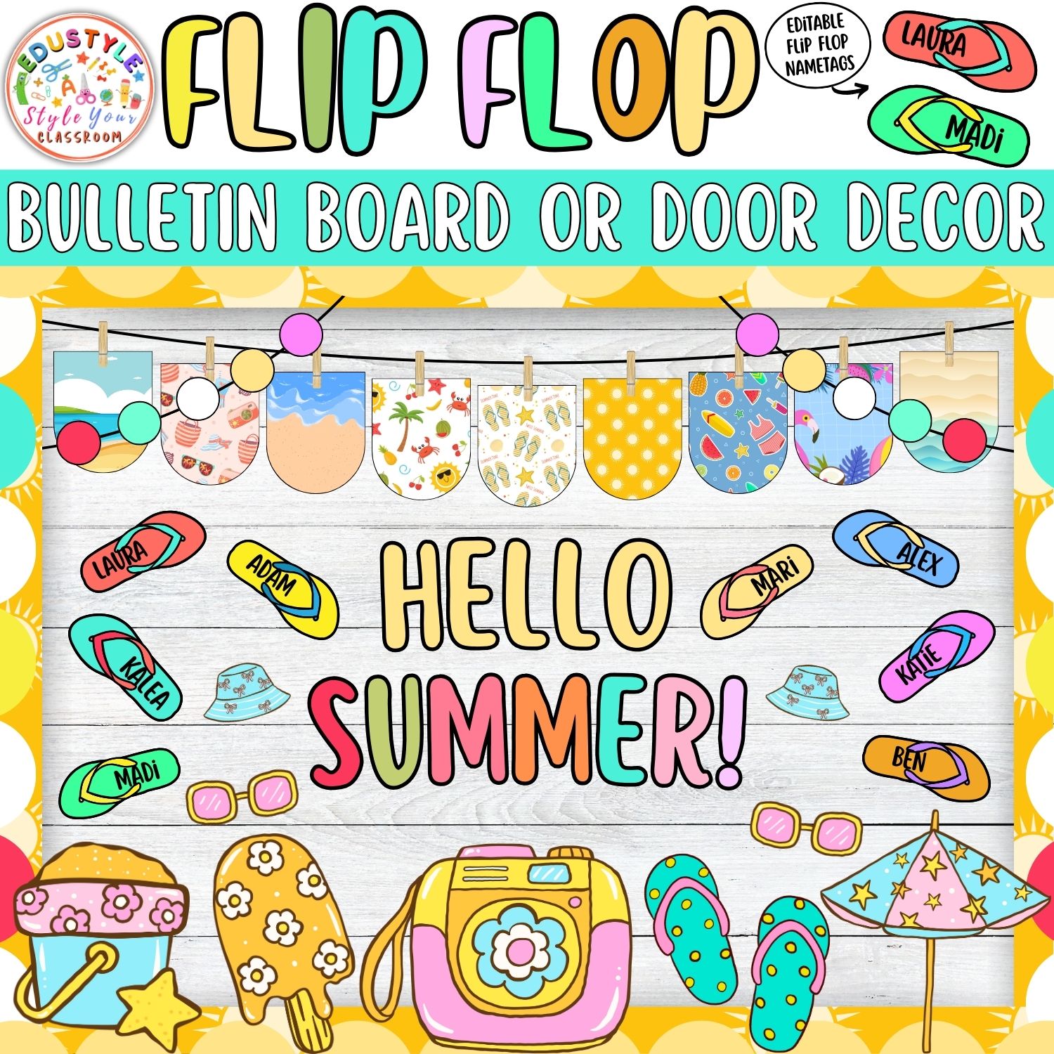 Step into sunny vibes with this playful Flip Flop into Summer Bulletin Board and Door Decor Kit! Perfect for end-of-year classroom refreshes, summer camps, or seasonal themes, this decor set is bursting with tropical flair, colorful banners, and whimsical beach illustrations. Whether you’re setting the tone for a fun summer or celebrating your sweet students, this kit adds cheerful energy to any learning space!