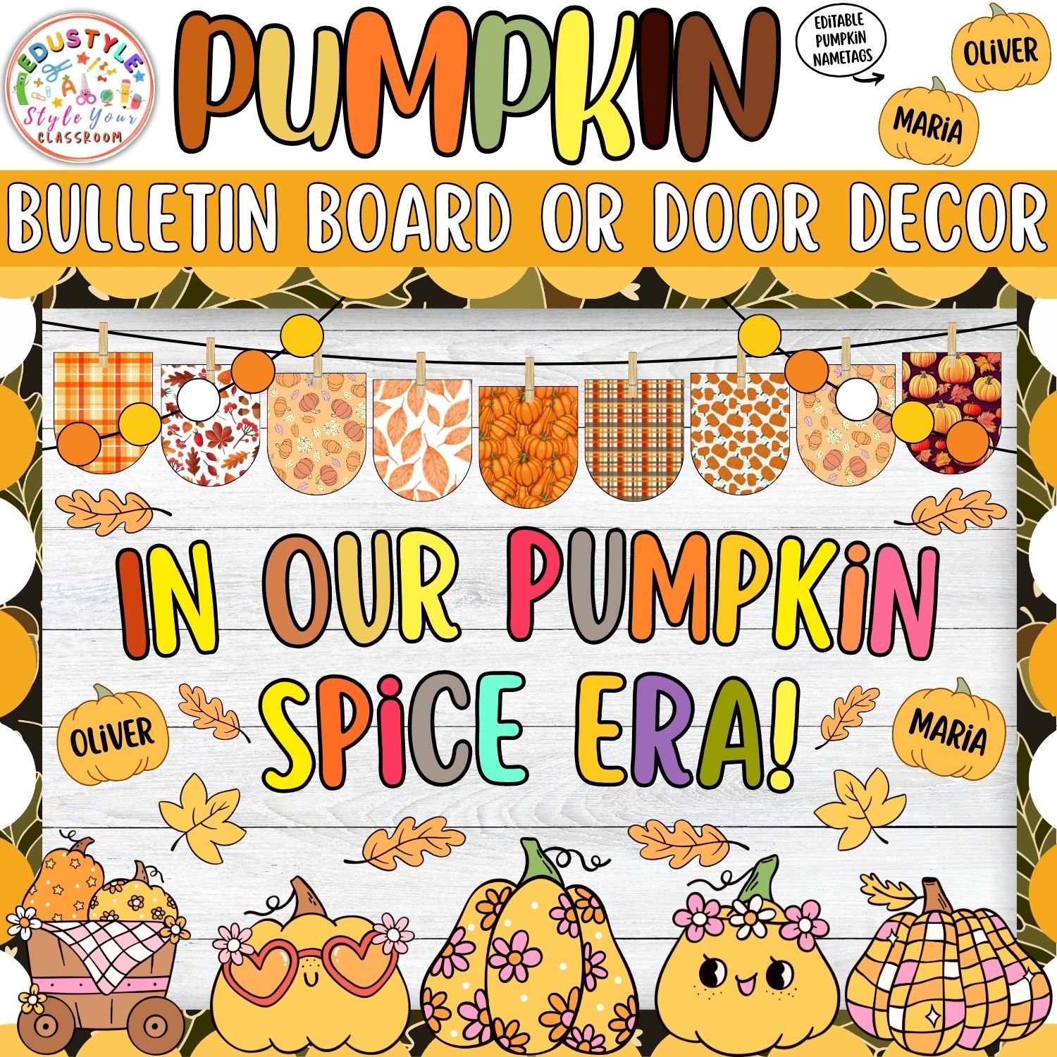 In Our Pumpkin Spice Era!: Pumpkin Bulletin Board or Door Decor Kit | HalloweenIn Our Pumpkin Spice Era!: Pumpkin Bulletin Board or Door Decor Kit | Halloween