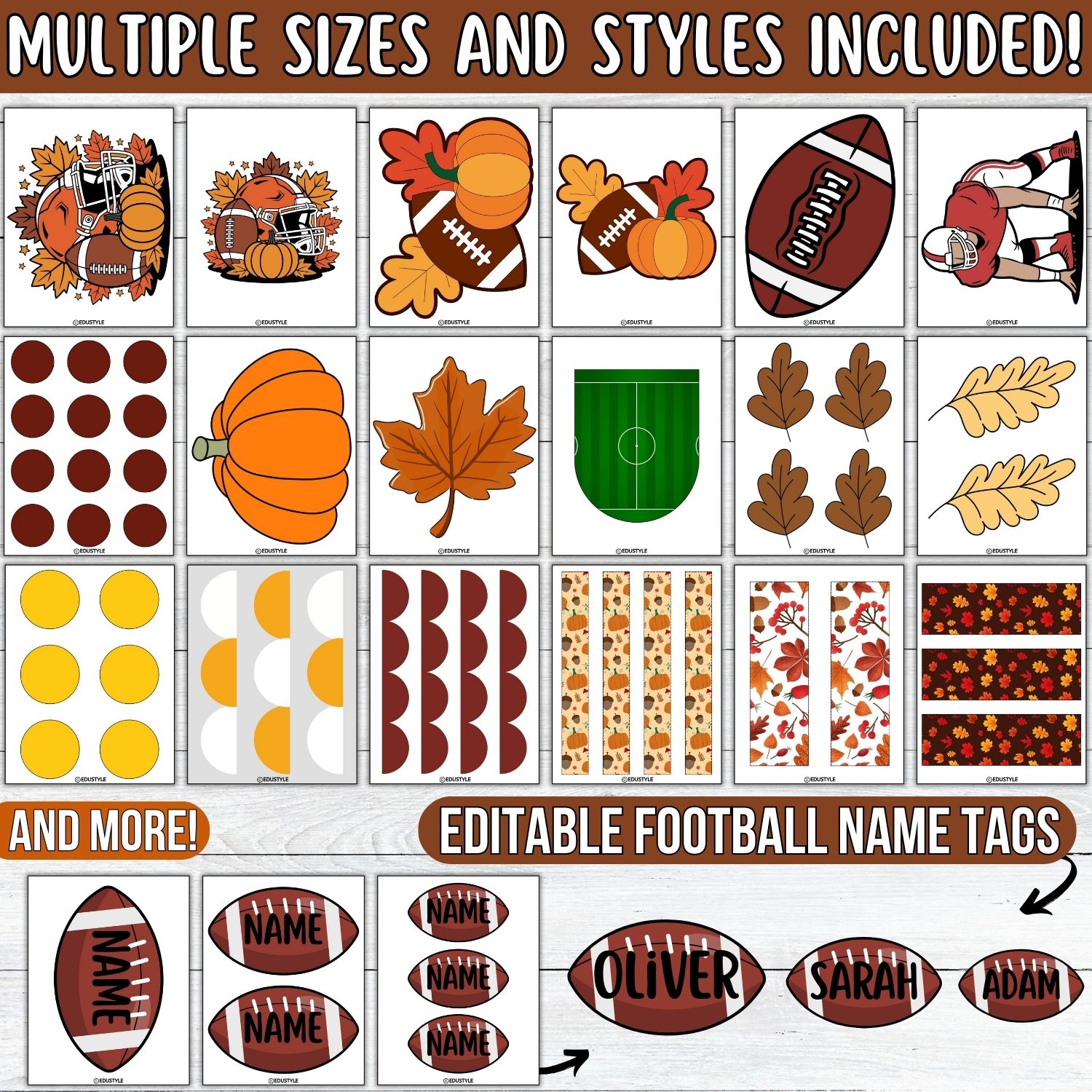 • Adorable classroom and seasonal decor pieces: pumpkins, leaves, football players, helmets, and more.