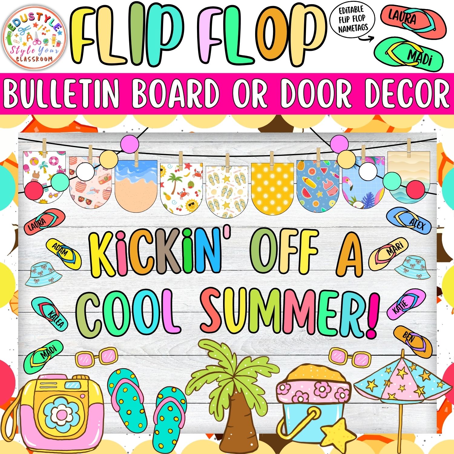 Kickin' Off a Cool Summer!: Flip Flop Bulletin Board or Door Decor Kit | May & JuneKickin’ Off a Cool Summer!: Flip Flop Bulletin Board or Door Decor Kit | May & June