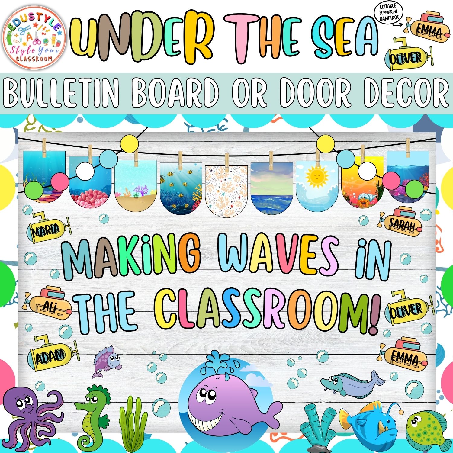 Make a splash into summer fun or bring your students on a deep dive into learning with this vibrant, “Making Waves in the Classroom!” themed bulletin board or door decor set! This versatile and colorful decoration kit captures children’s imagination and excitement for exploring the underwater world. Perfect for classrooms, libraries, or any learning space looking to create a dynamic and engaging environment.