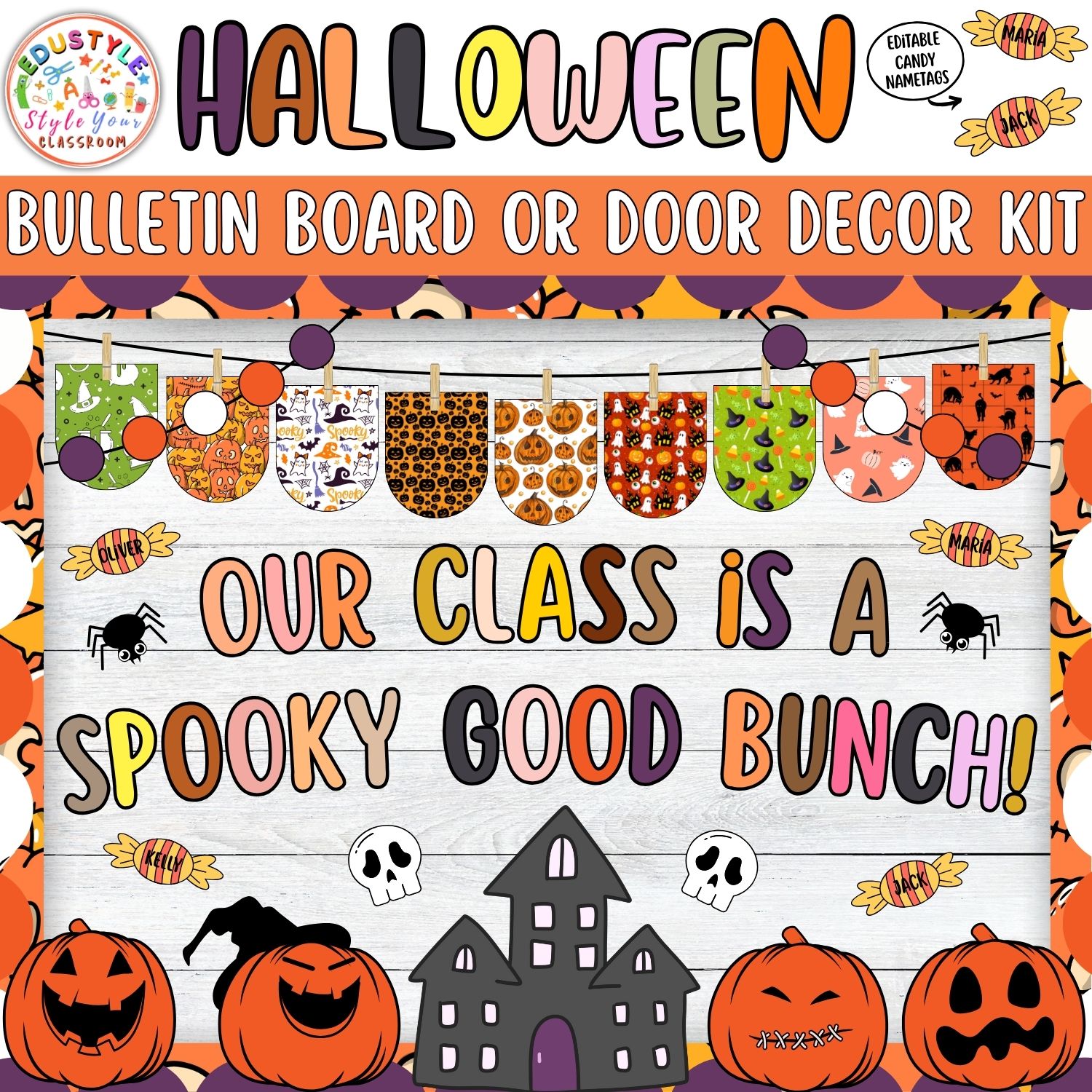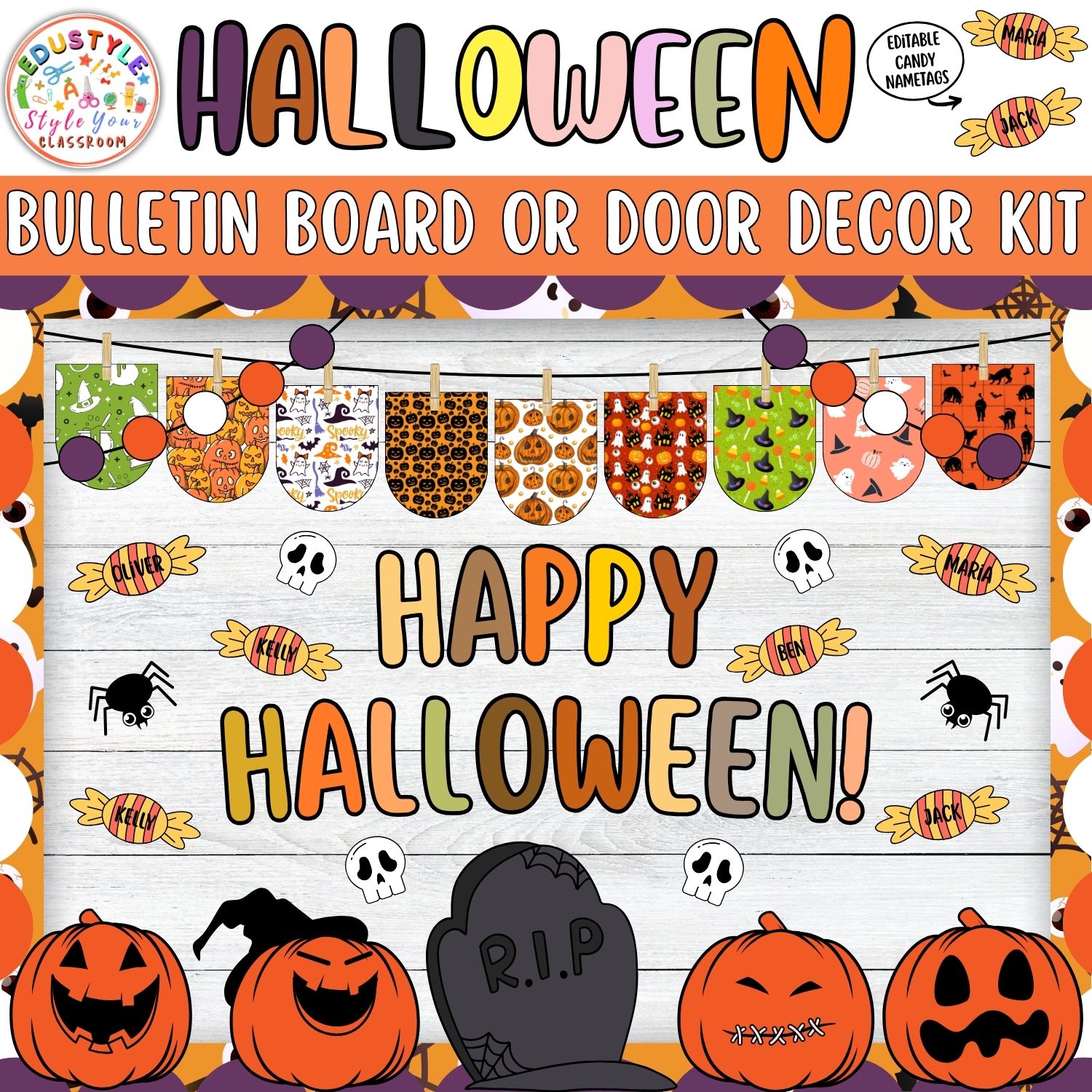 transform your classroom into a spooky-fun Halloween wonderland! This Halloween Bulletin Board and Door Decor Kit is the perfect mix of cute and spooky — ideal for teachers who want to celebrate the season with color and creativity. Featuring adorable pumpkins, ghosts, spiders, and editable candy name tags, this kit makes your classroom door or bulletin board the boo-tiful centerpiece of October! 👻