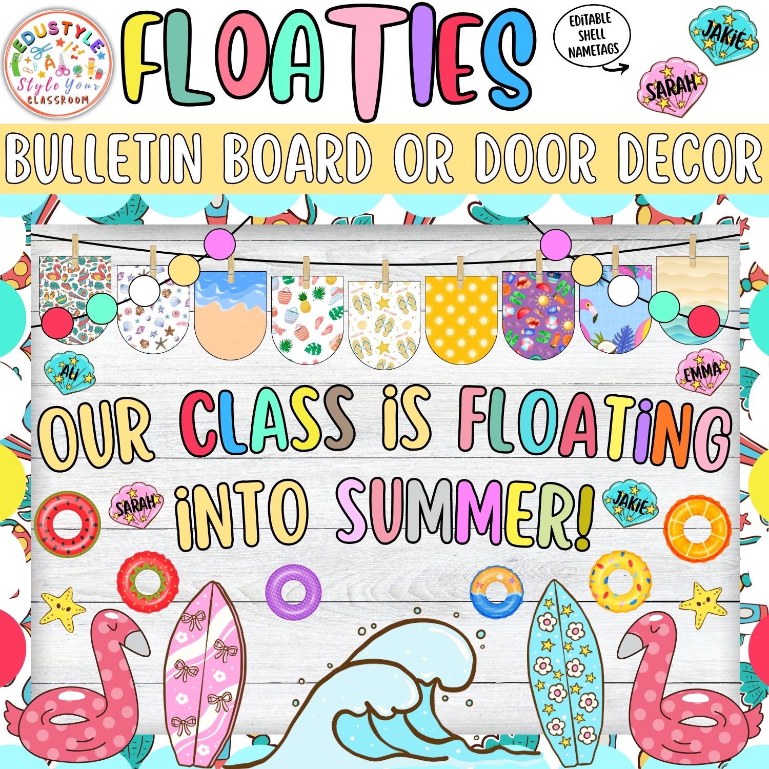 - 3 Full Bulletin Board Designs: āOur Class Is Floating into Summer!,ā āSummer Vibes!,ā and āHello Summer!ā