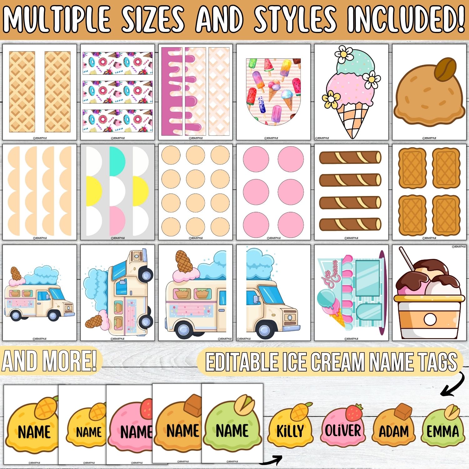 - Customizable Name Tags: Editable ice cream scoop designs for a personalized classroom touch.