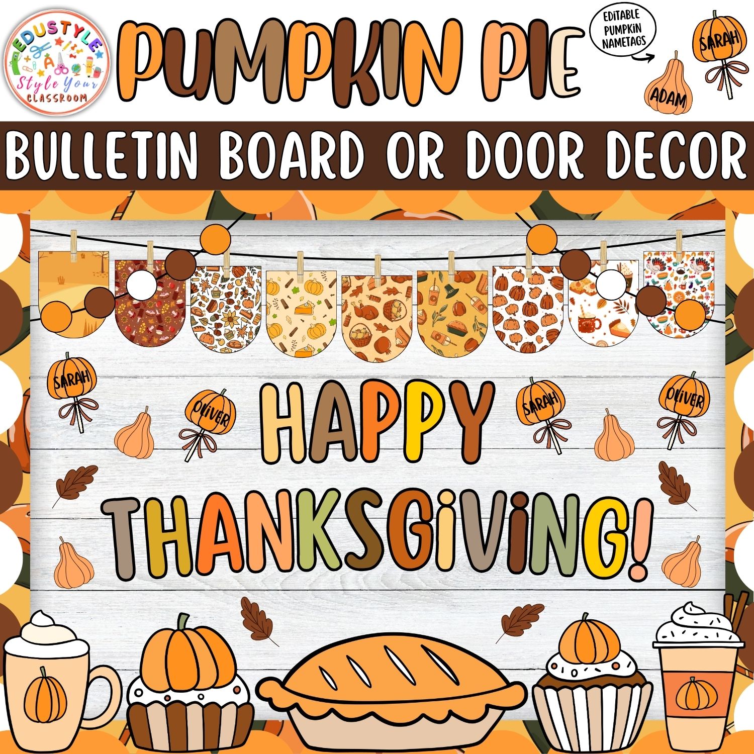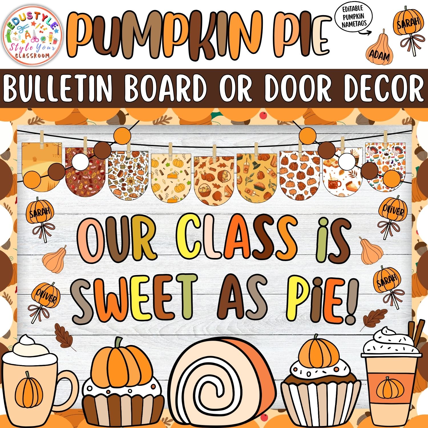 Celebrate Thanksgiving and the cozy fall season with our “Our Class is Sweet As Pie” Bulletin Board & Door Decor Kit! 🥧🍁 This charming classroom decoration set is perfect for creating a warm, festive atmosphere that highlights gratitude, kindness, and togetherness. With adorable pumpkin pie illustrations, editable name tags, and cheerful lettering, this kit makes decorating your classroom easy and fun!