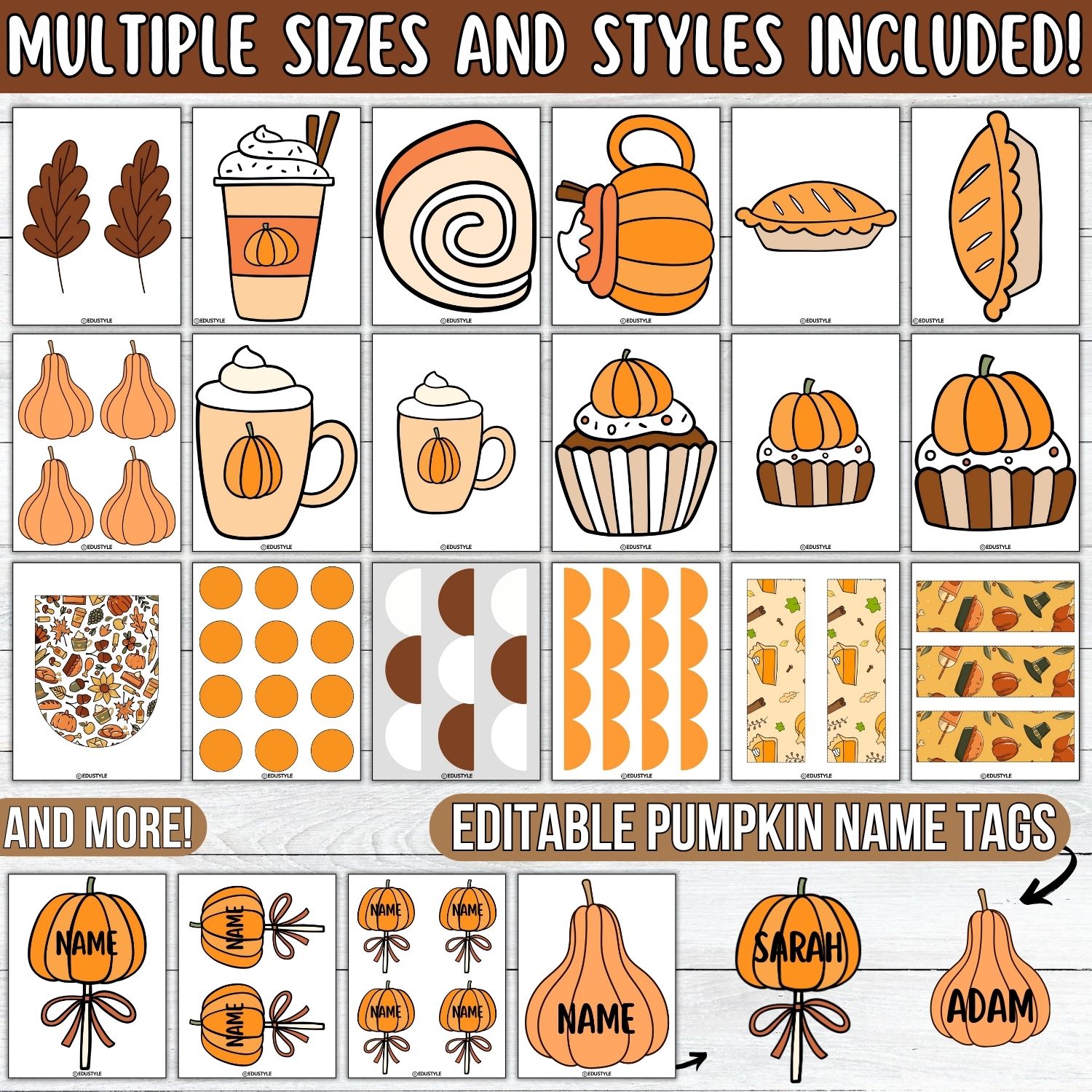 • Decorative Fall Elements – leaves, pies, pumpkins, and more.