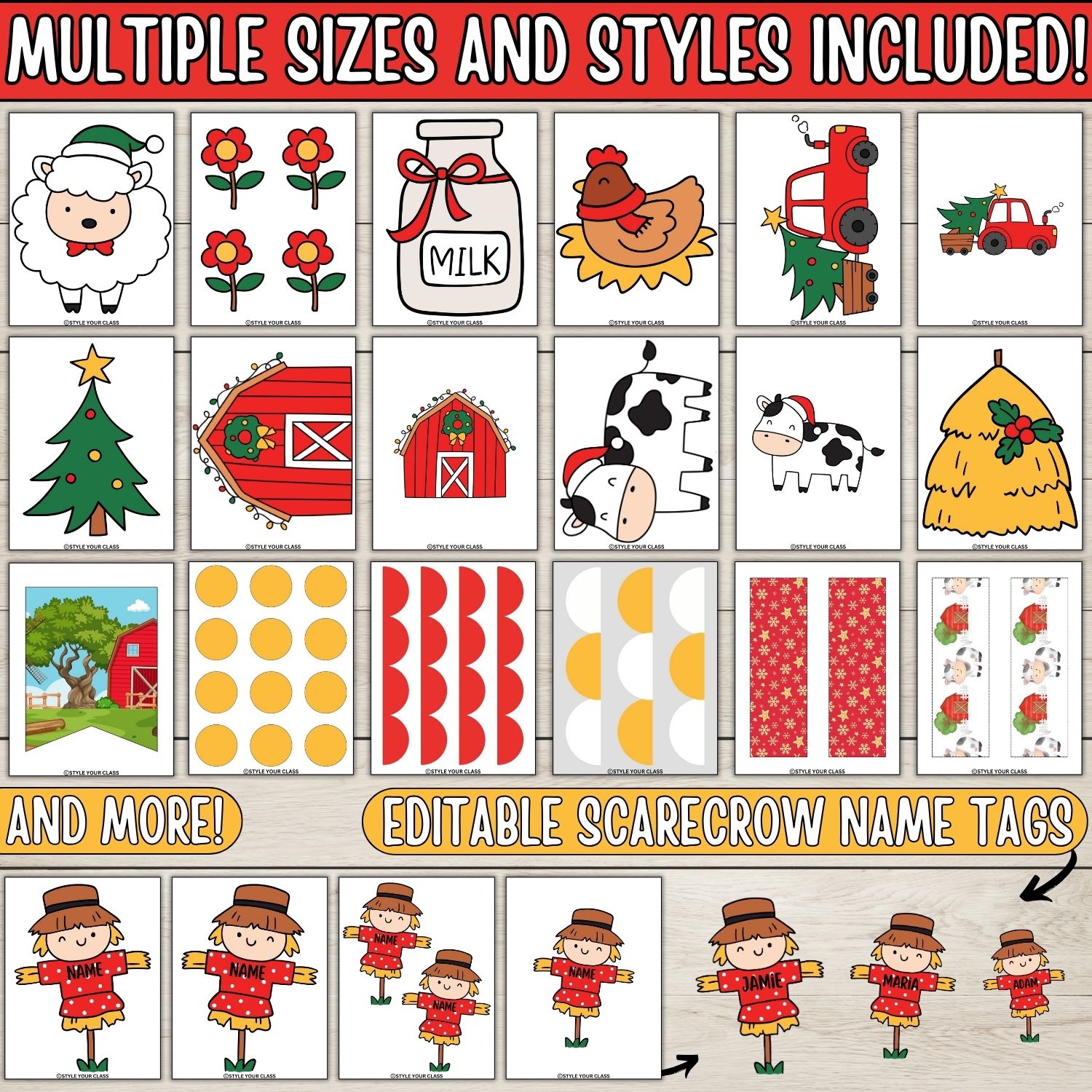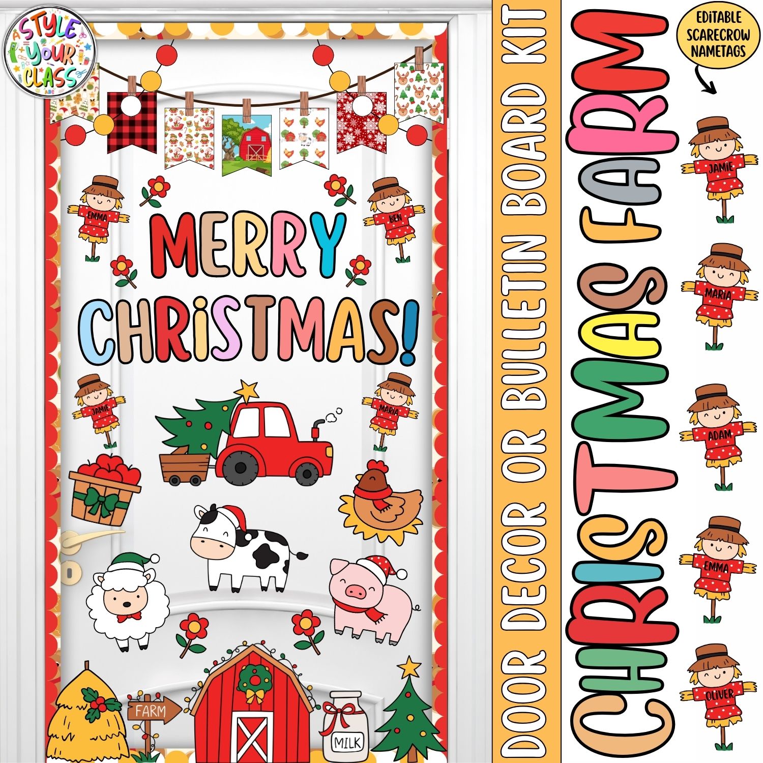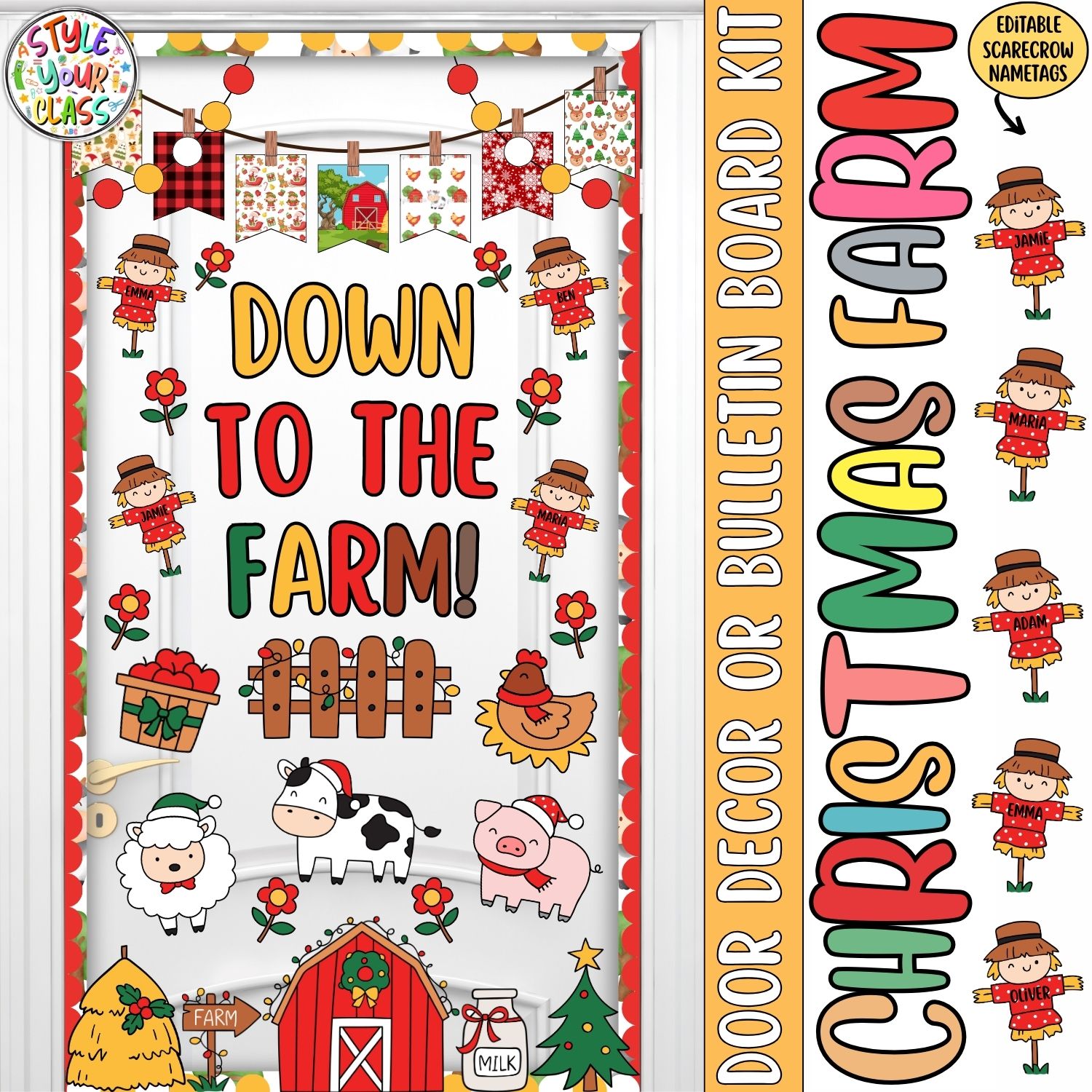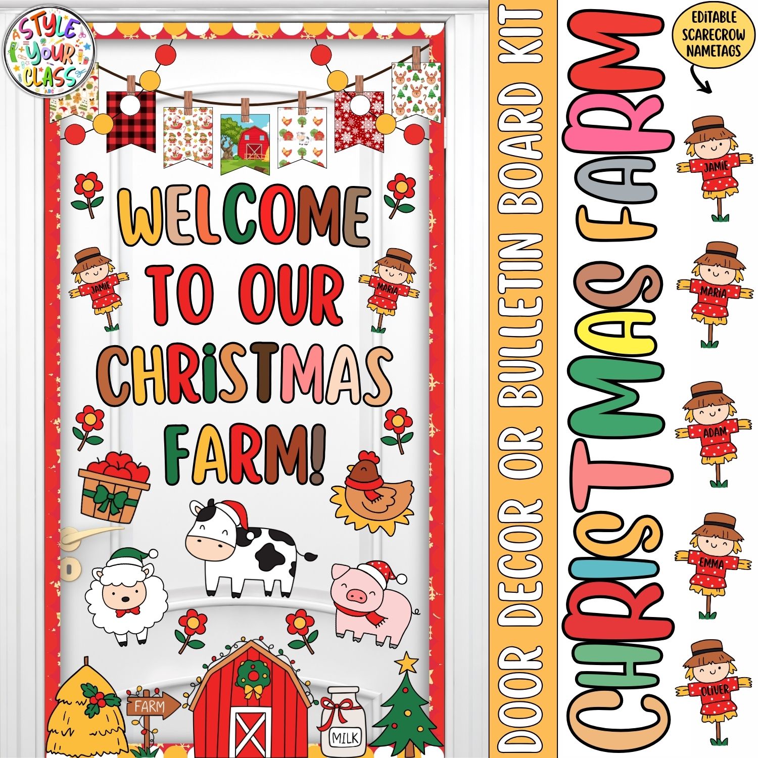 Bring festive farm fun to your classroom this season with this adorable Christmas Farm Door or Bulletin Board Kit! Packed with cheerful farm animals, barnyard scenes, and editable scarecrow name tags, this set creates a warm and welcoming holiday display your students will absolutely love.