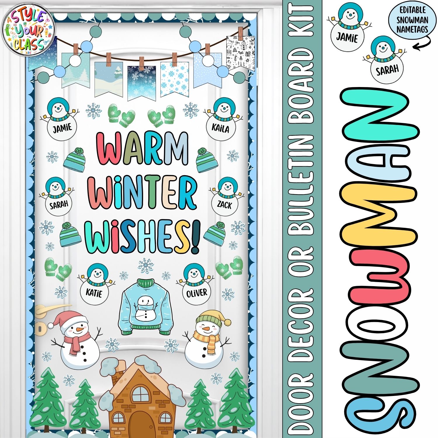 Bring a frosty winter vibe into your classroom with this cheerful Snowman Bulletin Board or Door Decor Kit! Featuring three adorable winter sayings, cute snowman characters, and editable name tags, this kit is perfect for welcoming students with seasonal charm. Designed for easy printing and quick setup, it’s the ideal way to brighten your space all winter long.