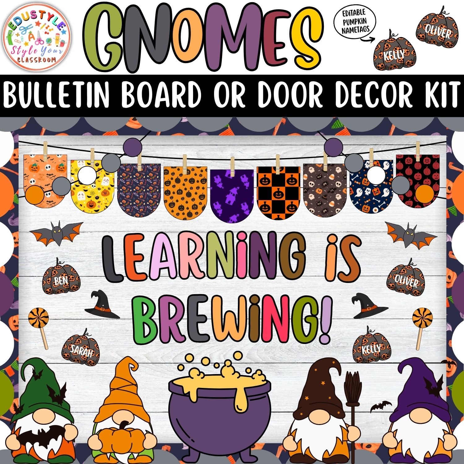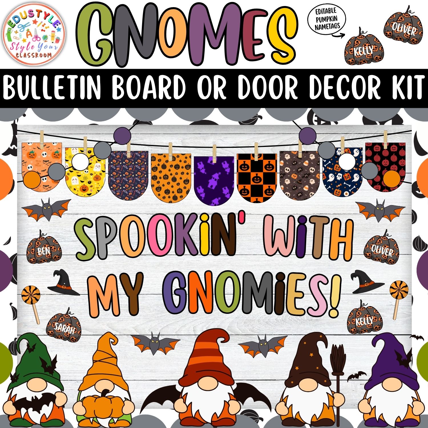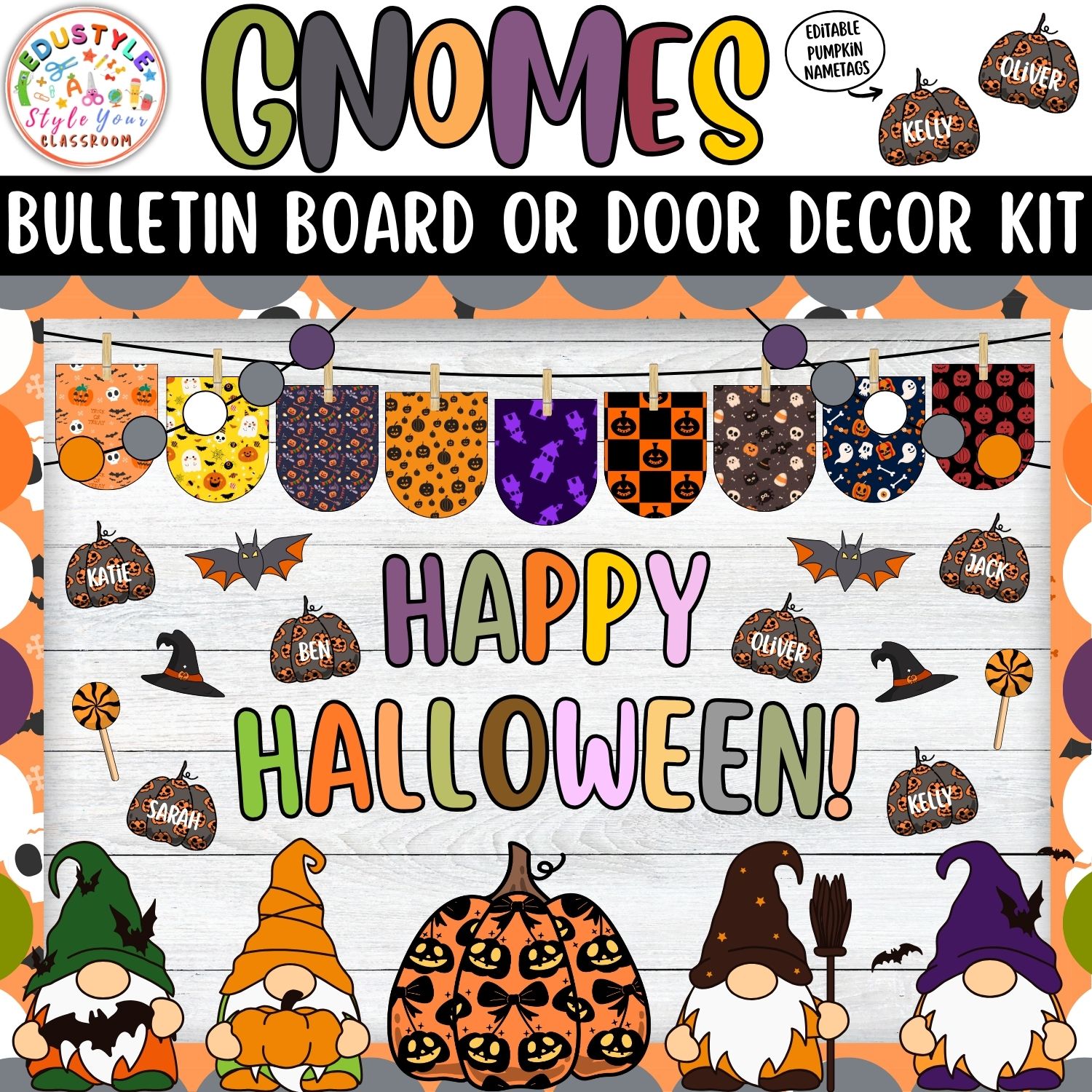Add some spooky-cute charm to your classroom this Halloween with the Halloween Gnomes Bulletin Board or Door Decor Kit! 🎃🧙♂️ This printable kit features whimsical Halloween gnomes, vibrant banner patterns, editable pumpkin name tags, and fun sayings that make your classroom festive and welcoming.
