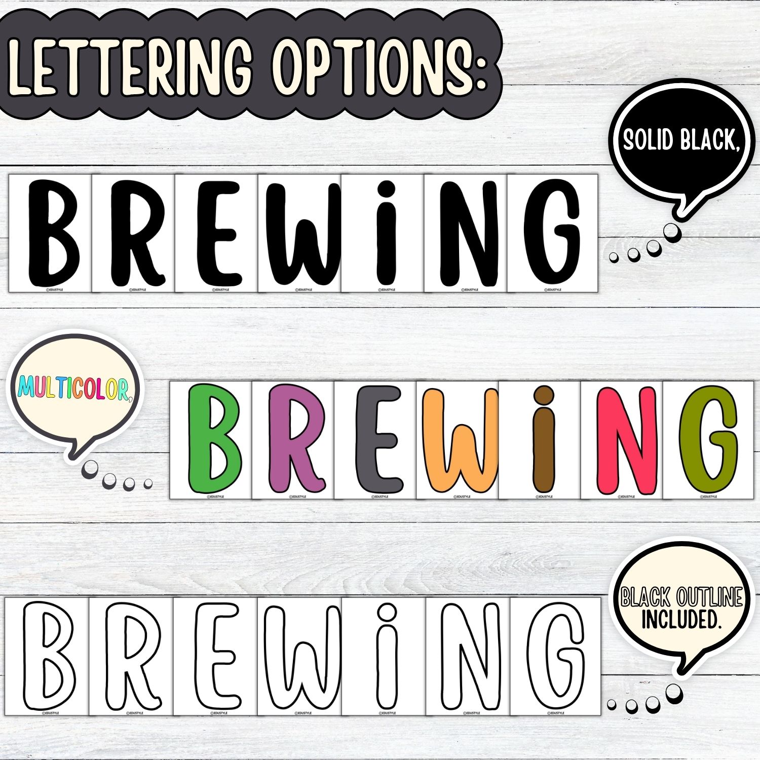 - Lettering options: solid black, multicolor, and black outline ✏️