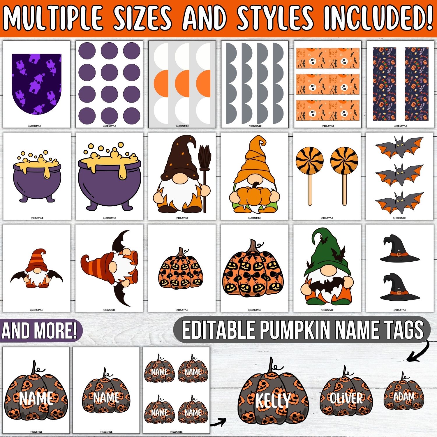 - Printable gnome characters, cauldrons, pumpkins, bats, lollipops, and more!