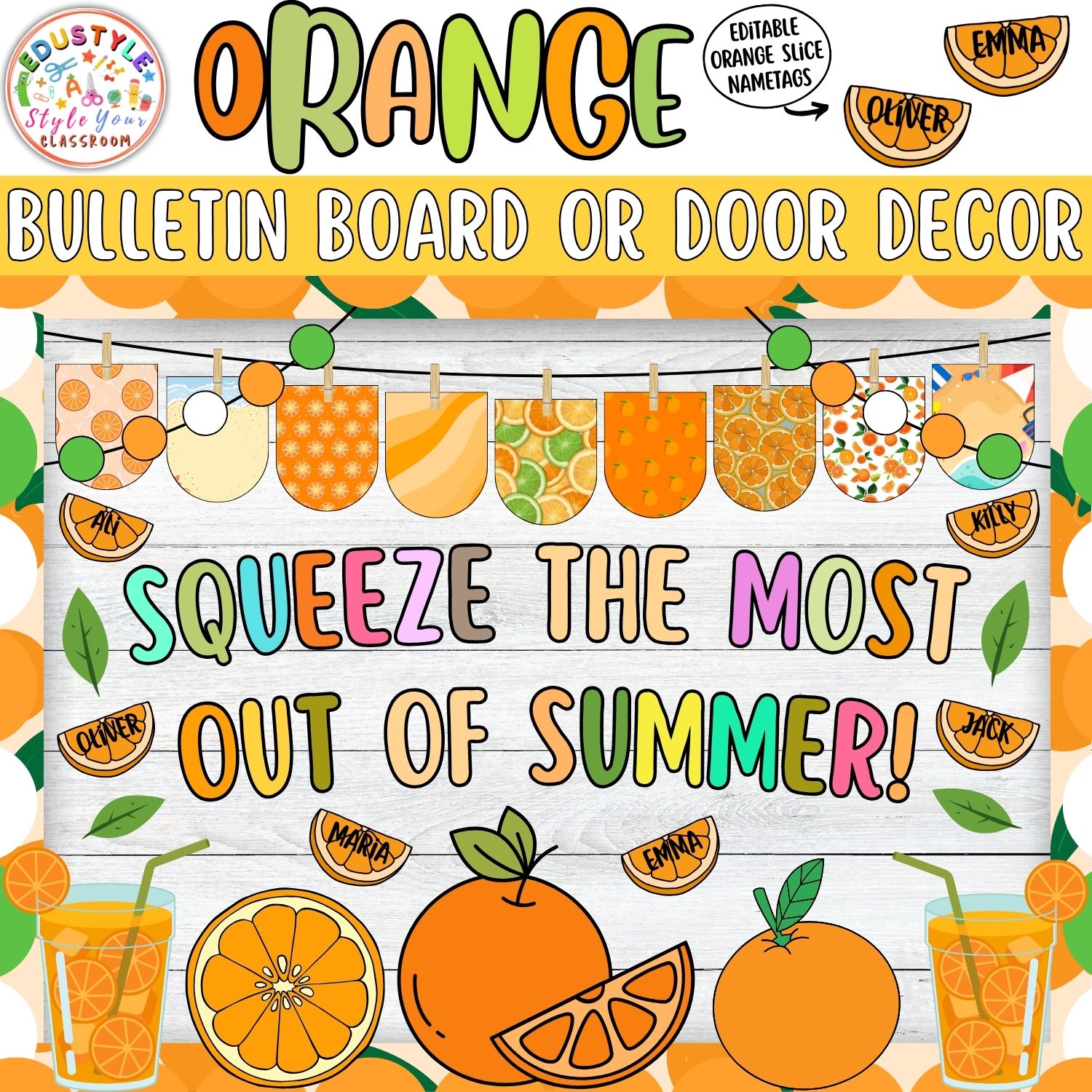 • Editable Orange Slice Name Tags: Personalize your decor easily for each student.