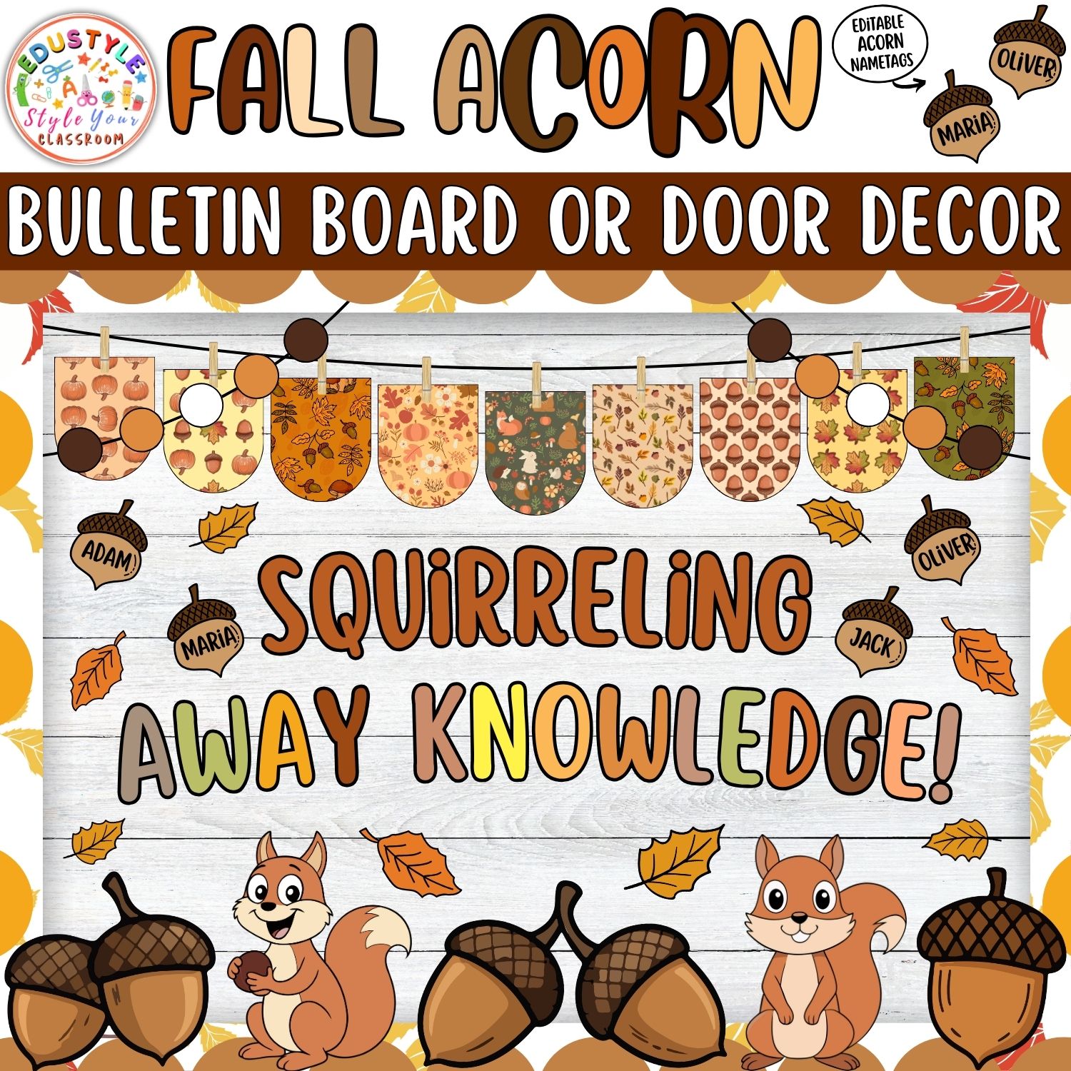This versatile kit is designed to be both festive and functional, making it a great addition to your fall classroom theme, reading corner, or hallway display. With editable acorn name tags, you can easily personalize your board for every student!