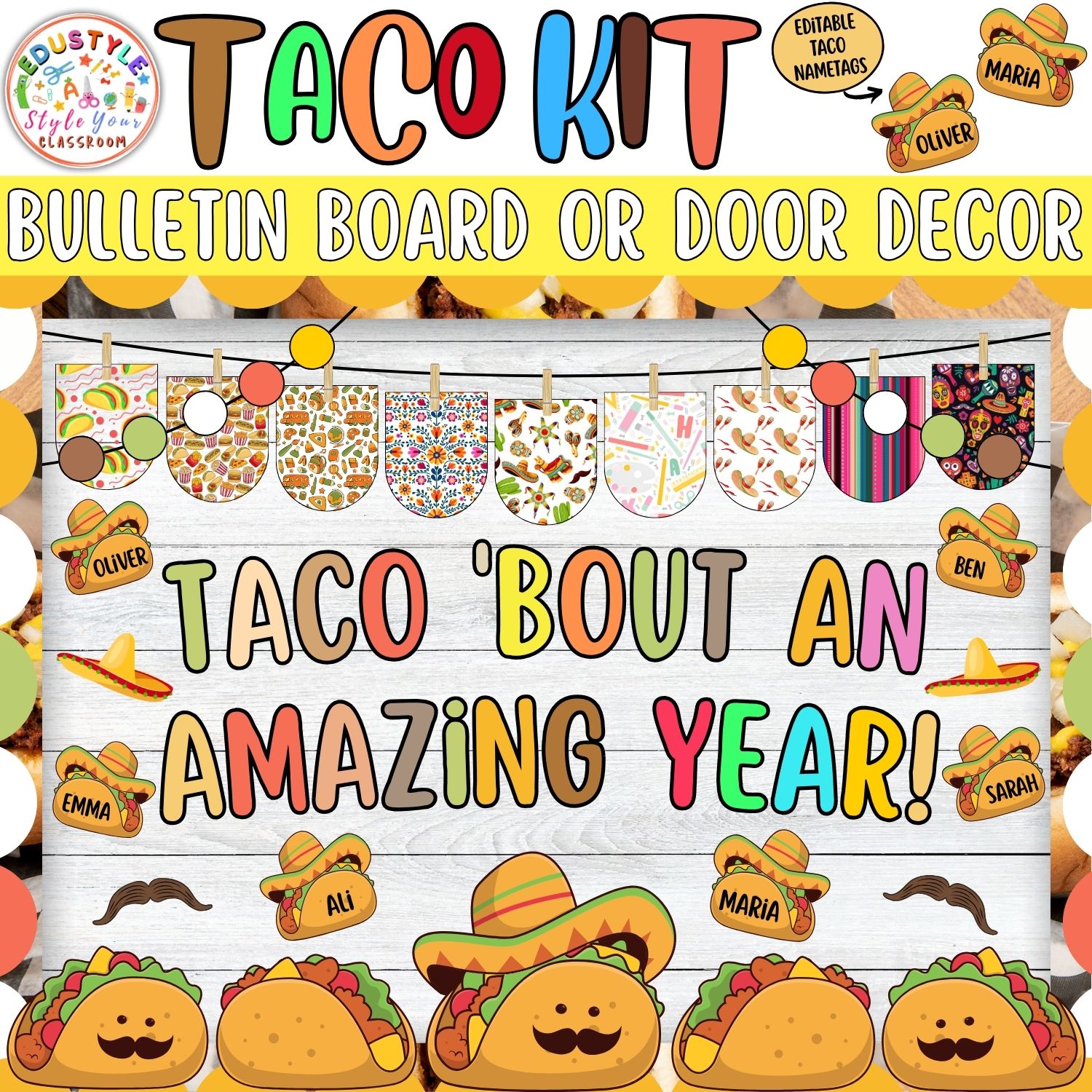 Turn your classroom into a fiesta of learning with this delightful Taco-Themed Bulletin Board & Door Decor Kit! Vibrant, fun, and filled with charming taco characters, colorful sombreros, mustaches, and editable taco nametags, this decoration set will inspire teamwork, positivity, and a zest for learning.