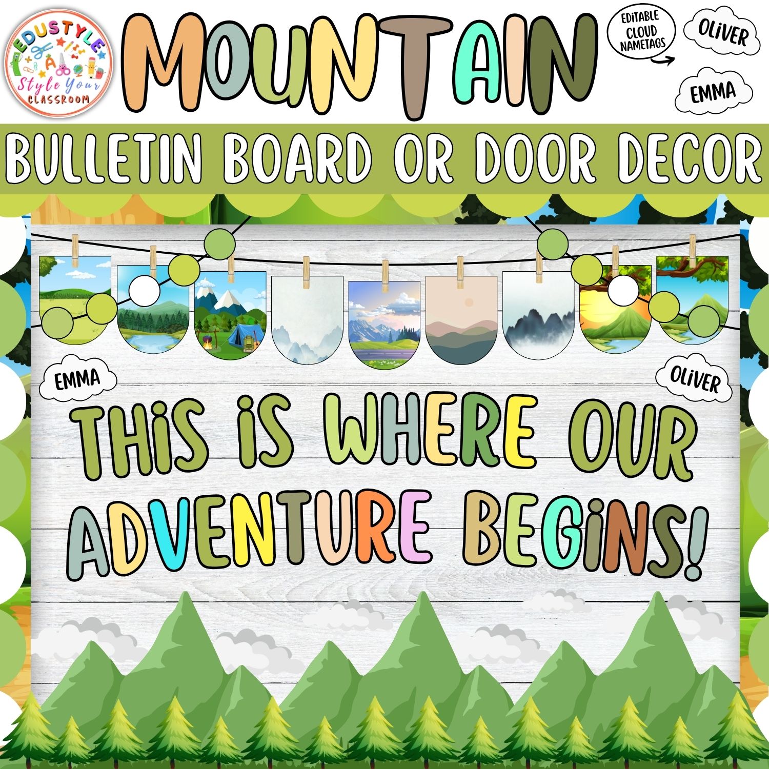Transform your classroom into an inspiring mountain escape with this captivating Mountain-Themed Bulletin Board & Door Decor Kit! Perfect for welcoming students and encouraging a spirit of exploration and growth, this kit is beautifully designed with vibrant mountain landscapes, cheerful cloud-shaped editable nametags, and uplifting sayings.