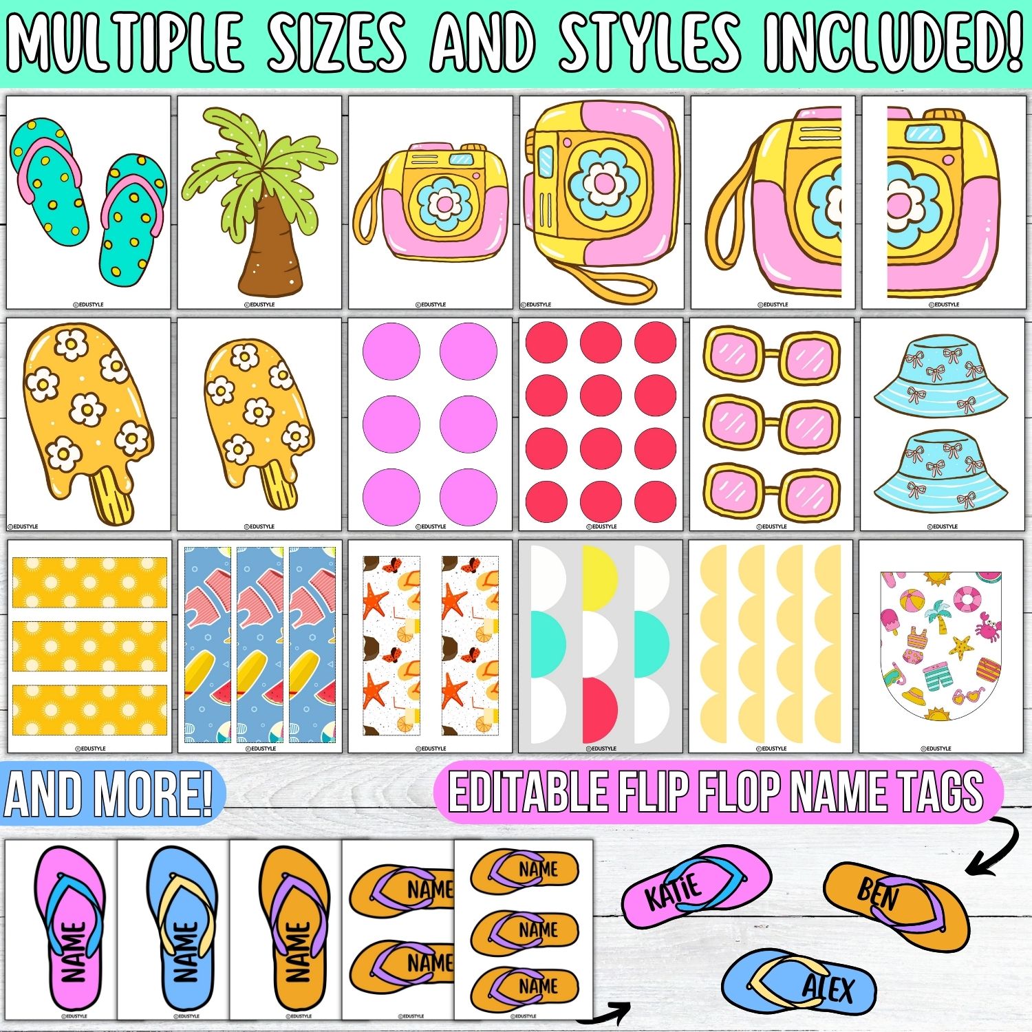 • Flip flops, sunglasses, cameras, palm trees, popsicles, beach umbrellas & more! - Easy Print & Use – Classroom-Friendly Designs in Multiple Sizes