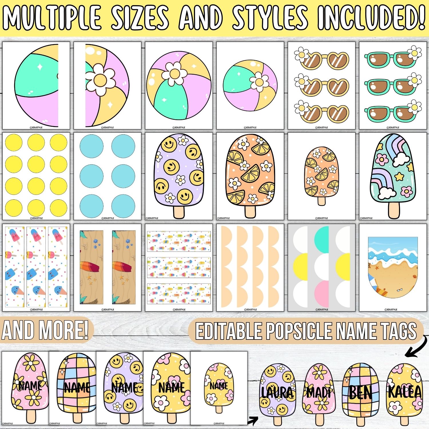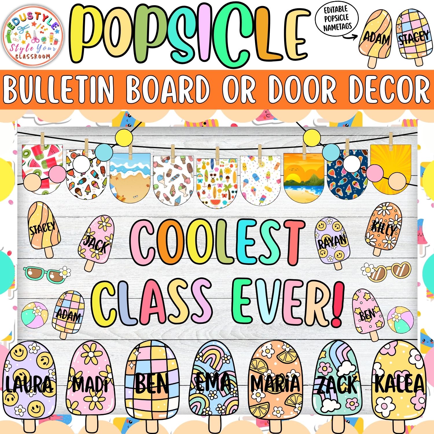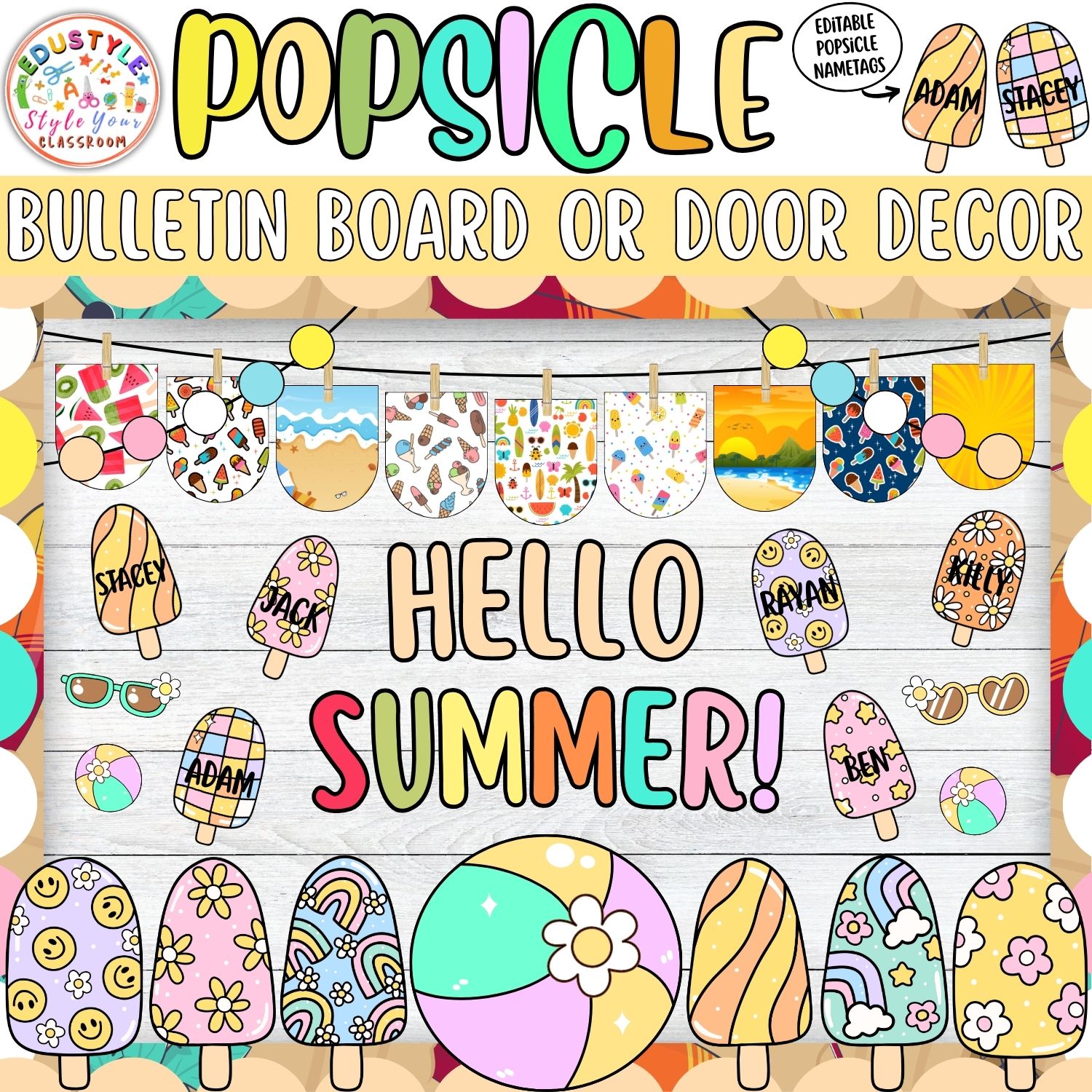 Packed with playful popsicle designs, colorful banner styles, and editable name tags, this resource makes decorating fun and effortless. Customize the editable popsicle name tags in PowerPoint to highlight student names, then simply print and hang!