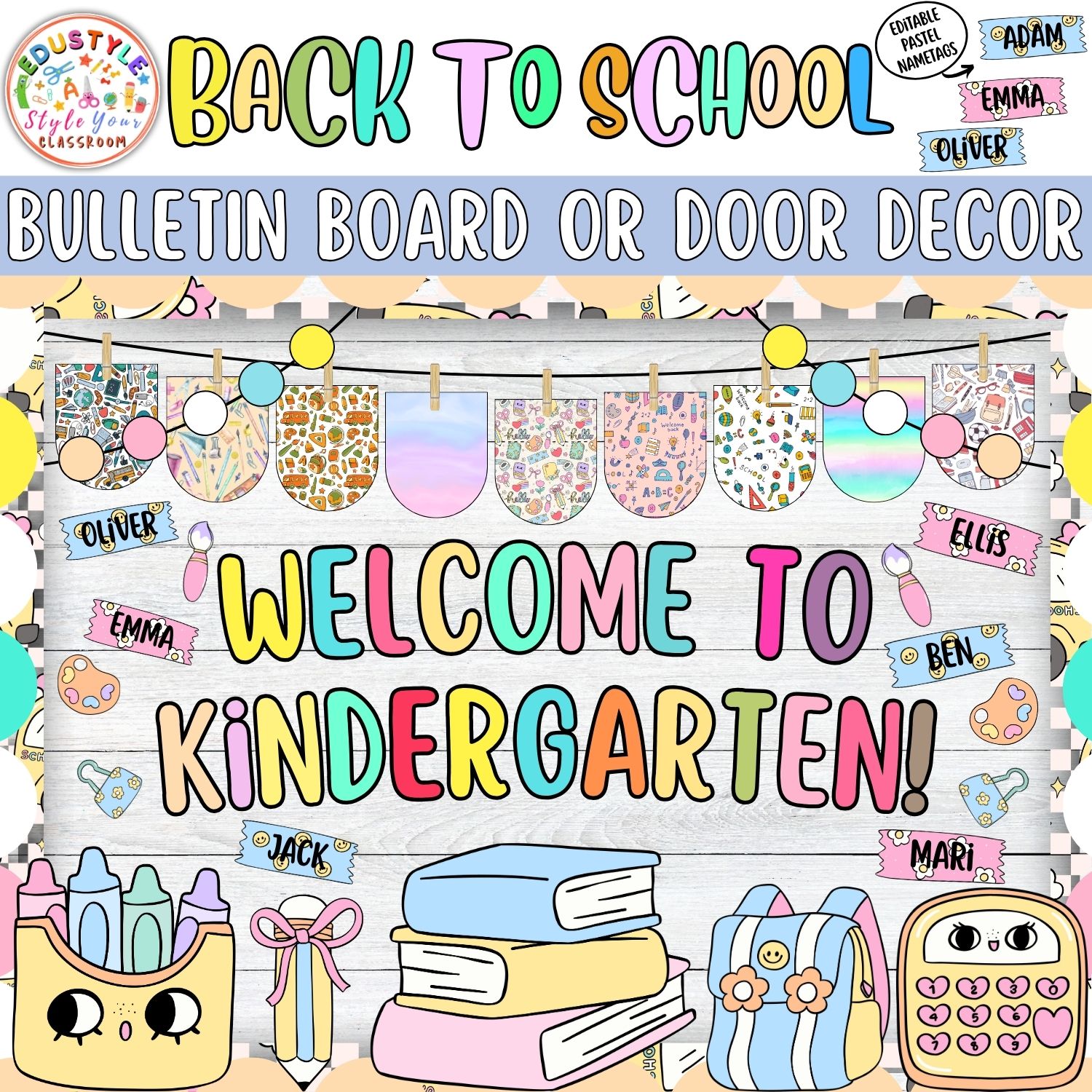 - Editable pastel name tags, allowing personalization for each student
