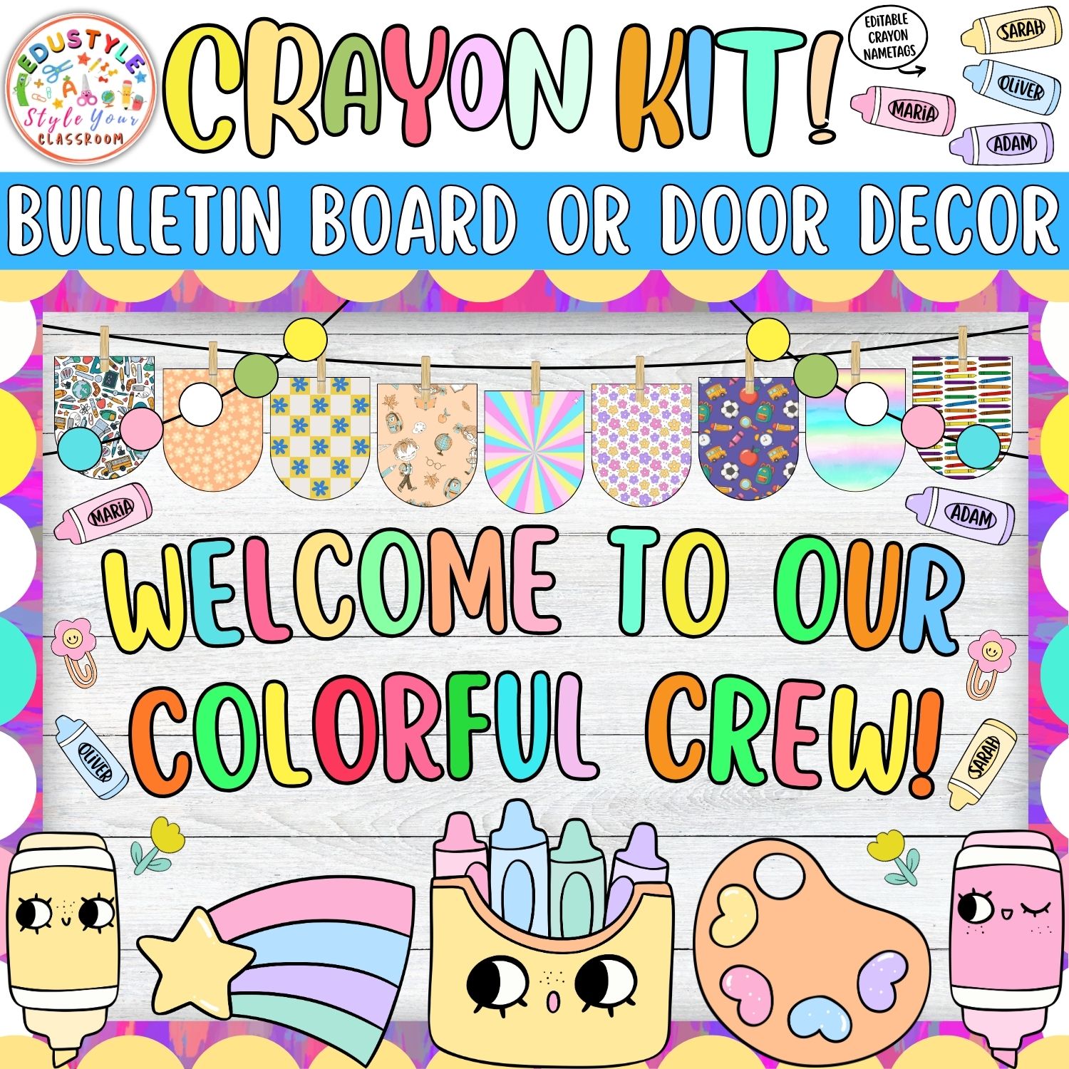Thoughtfully designed with playful crayon-themed visuals, charming pastels, and inspiring messages, this set is ideal for teachers looking to foster a creative, engaging, and inclusive classroom community.