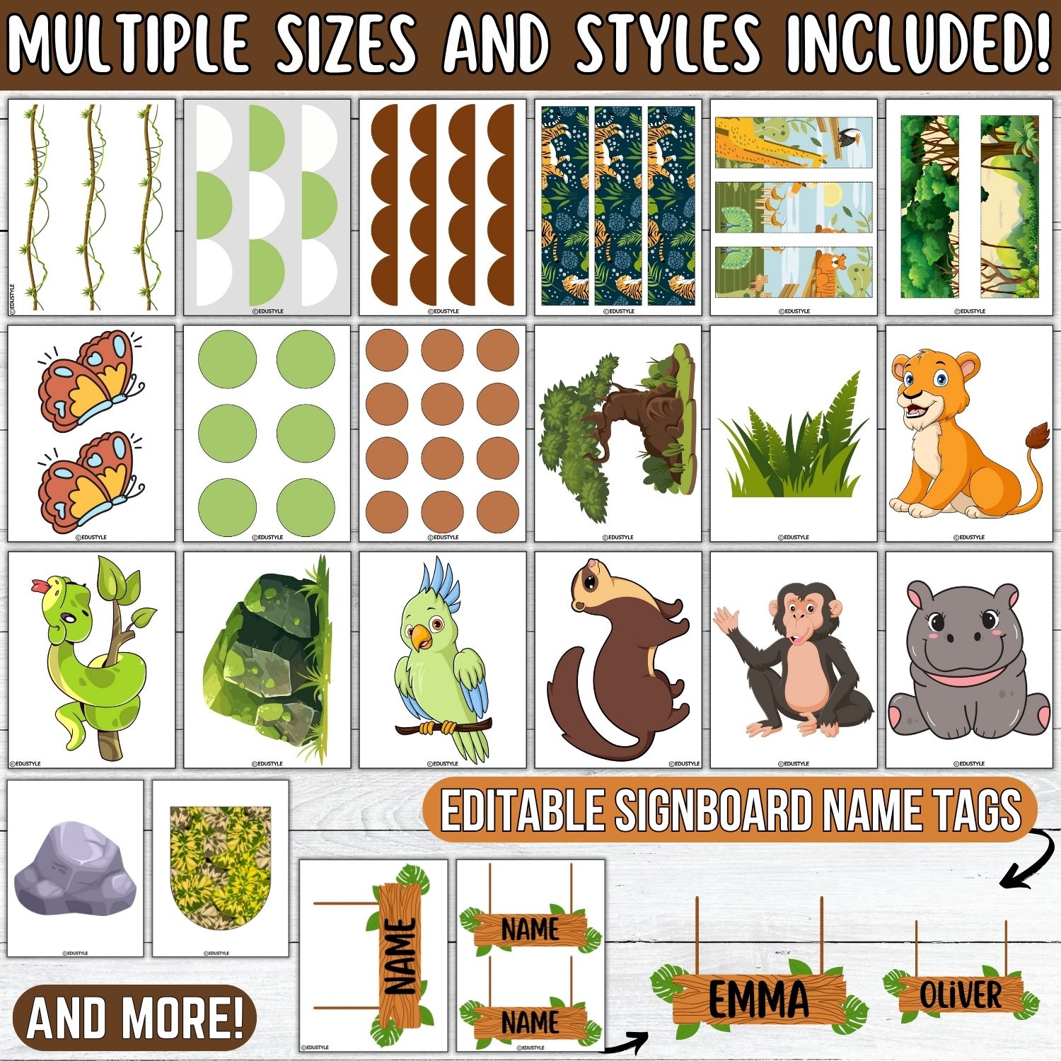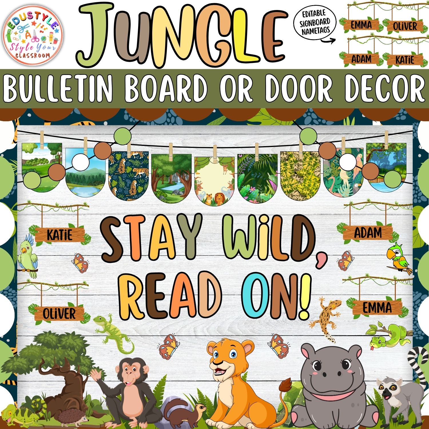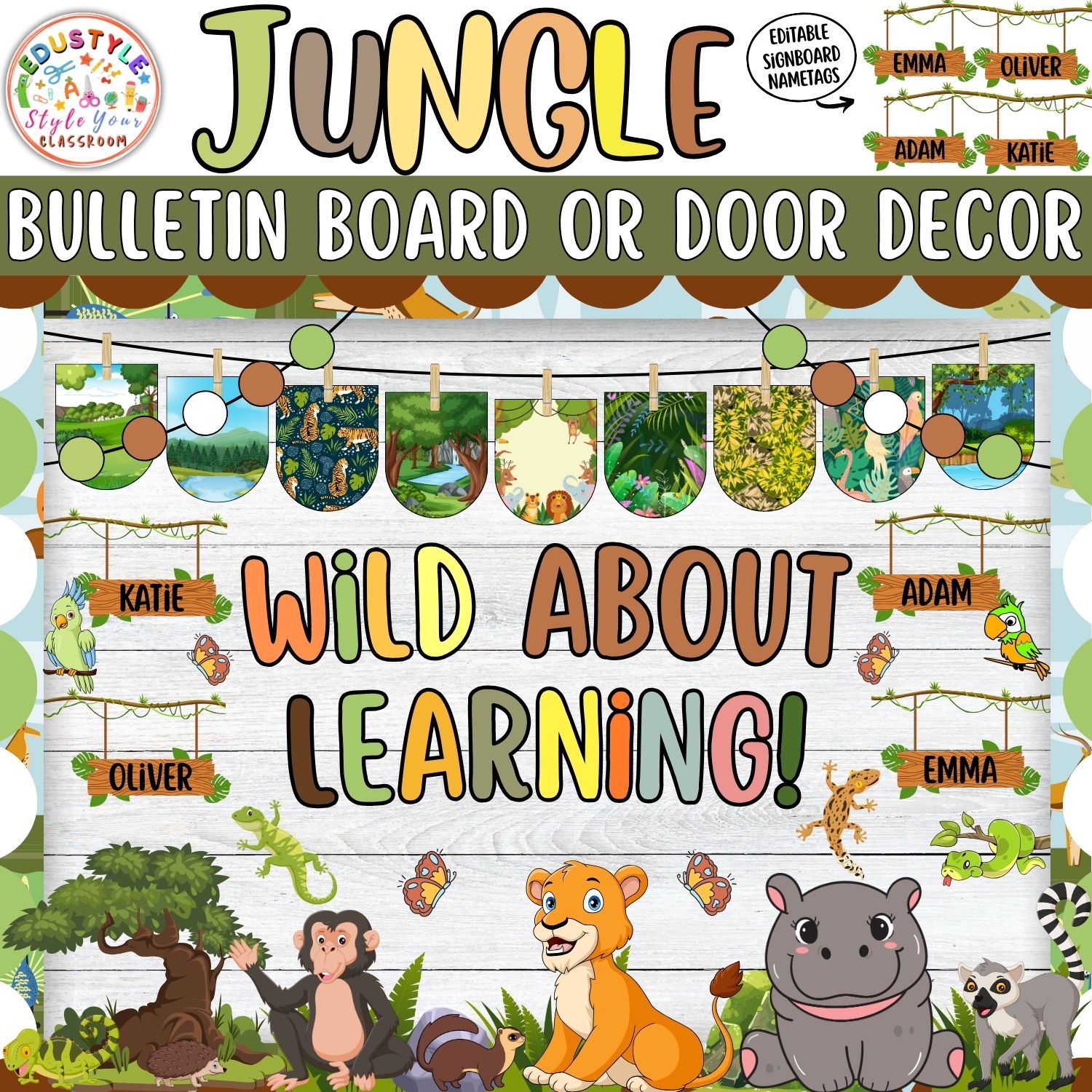 Seamless Personalization: Editable tags make each student feel included and part of the jungle journey.
