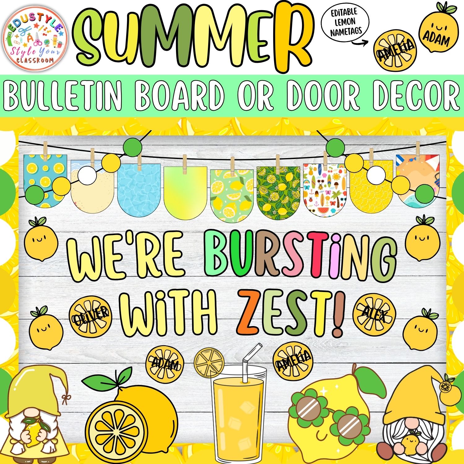 Add a splash of citrus fun to your classroom with the We’re Bursting with Zest! Summer Bulletin Board & Door Decor Set! Perfect for celebrating the end of the school year or brightening up your space for summer, this juicy lemon-themed kit includes everything you need to create a cheerful and zesty display.
