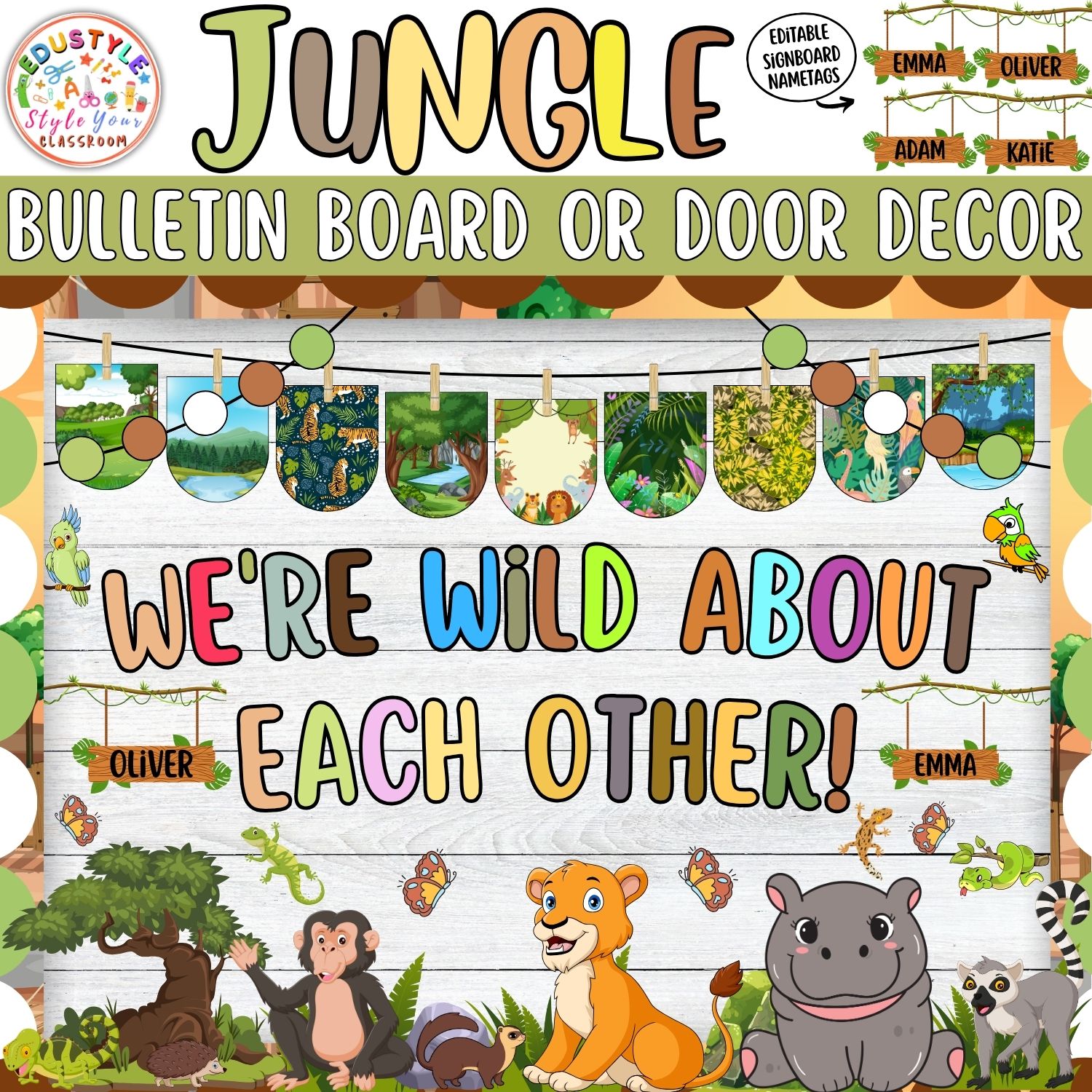 Seamless Personalization: Editable tags make each student feel included and part of the jungle journey.