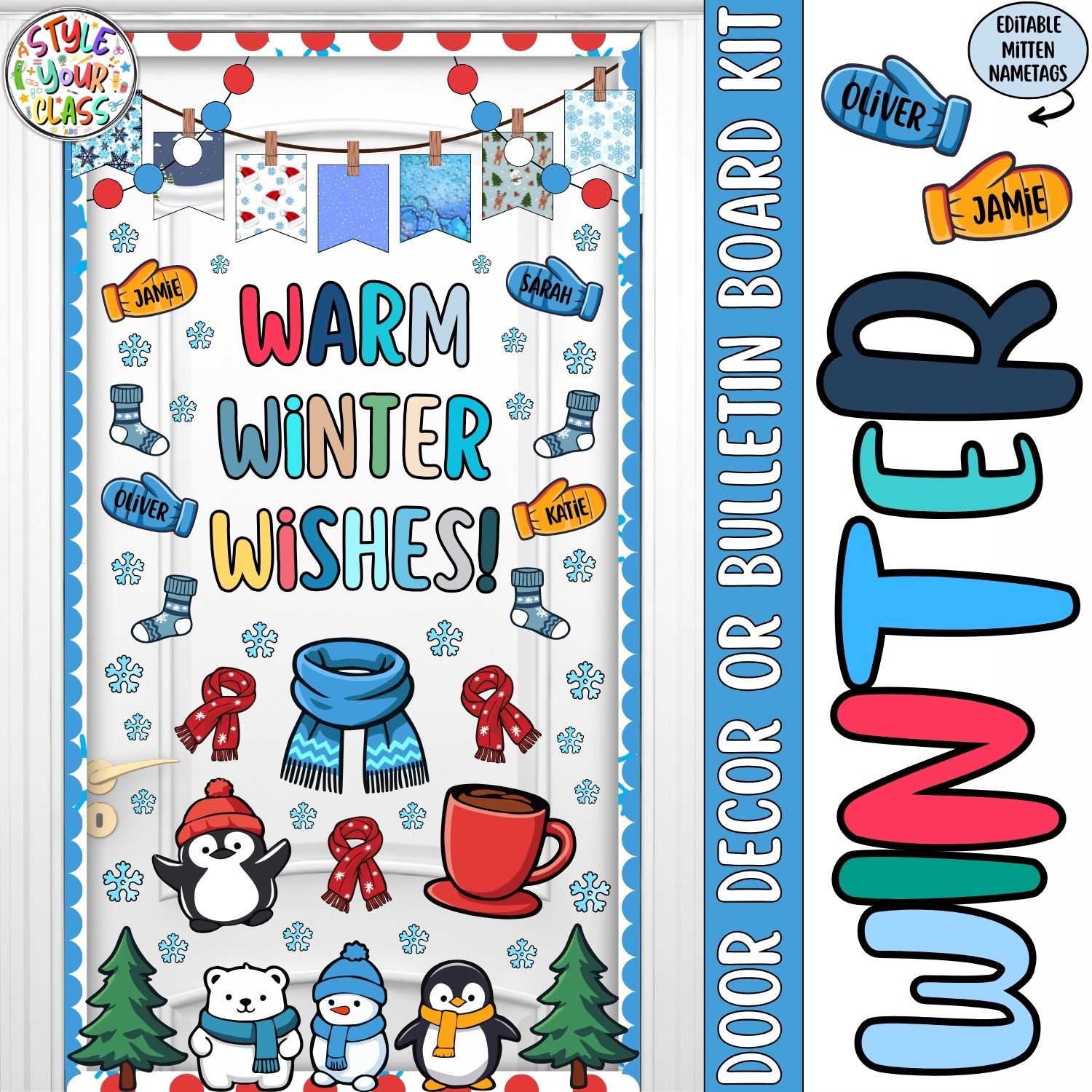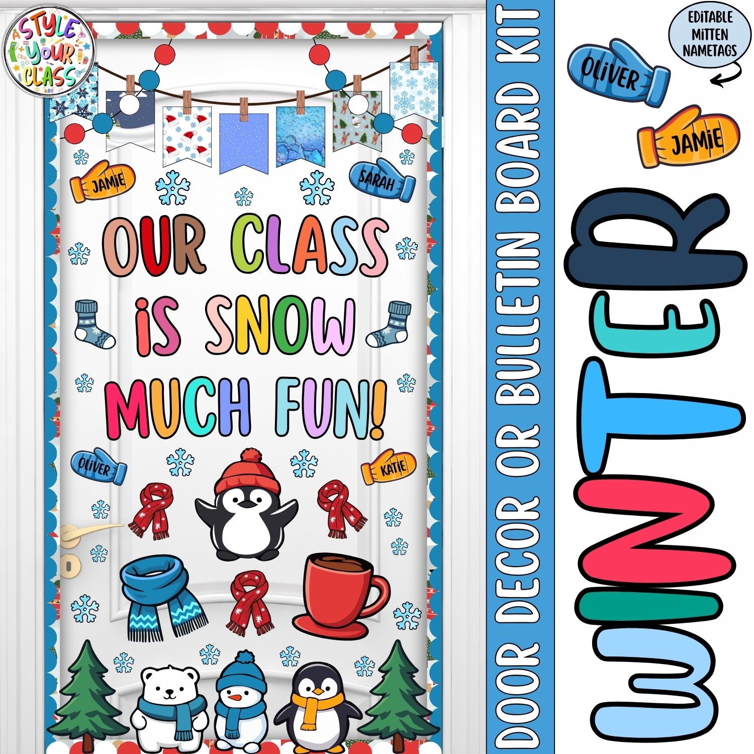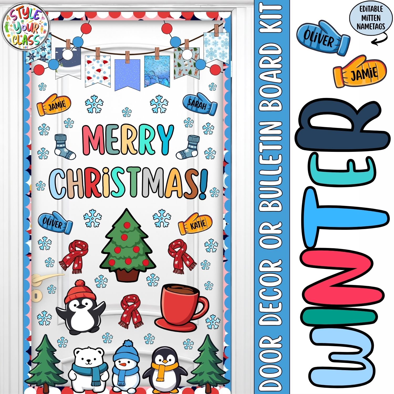 Perfect for classroom doors, bulletin boards, or hallway decorations, this printable kit makes winter decorating simple and fun—just print, cut, personalize, and display!