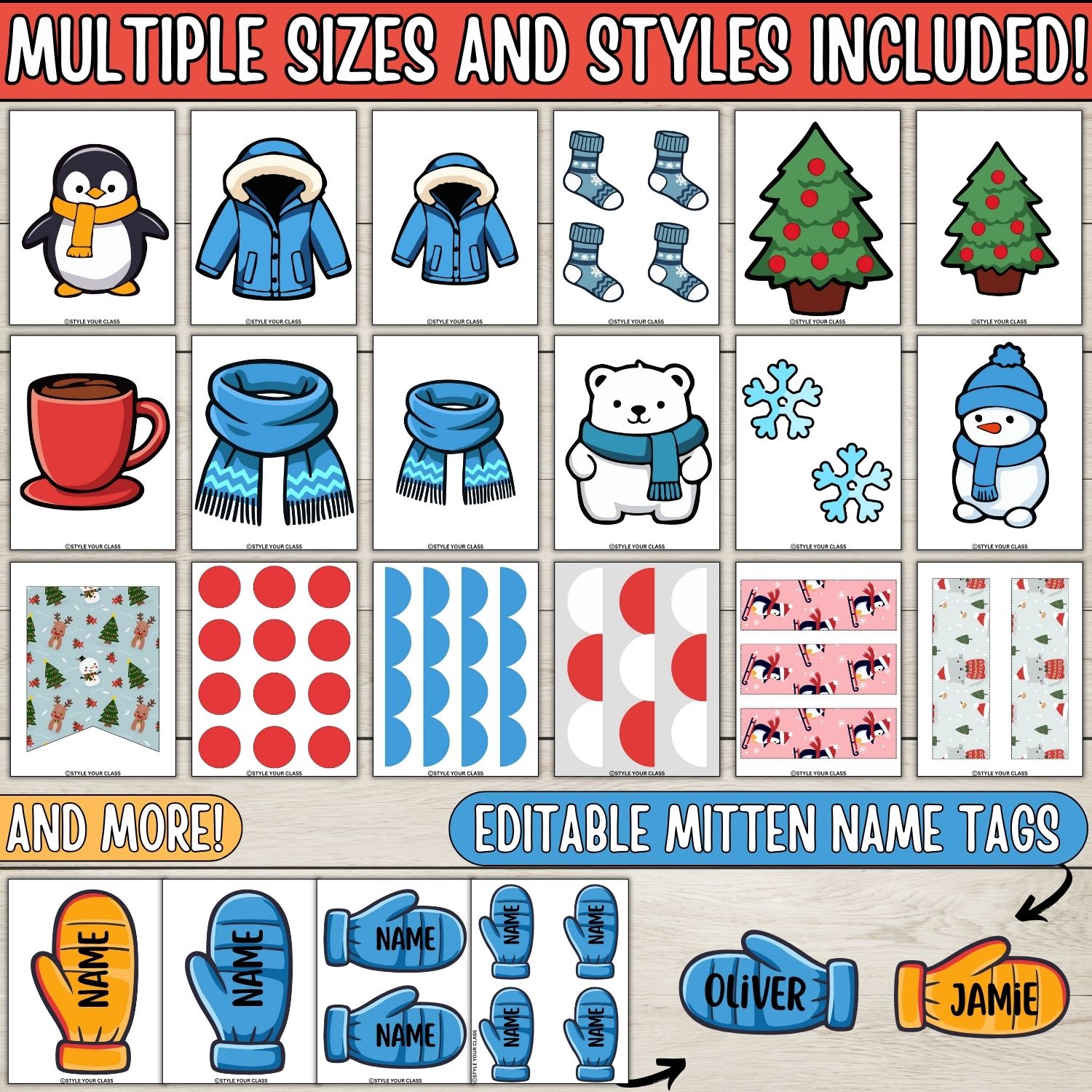 Bring cozy winter charm into your classroom with this adorable Winter Bulletin Board or Door Decor Kit! With cheerful penguins, warm scarves, mittens, sweaters, and editable mitten name tags, this set creates a bright and welcoming display your students will love all season long.