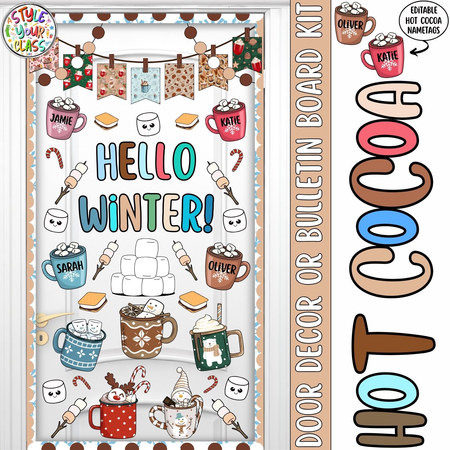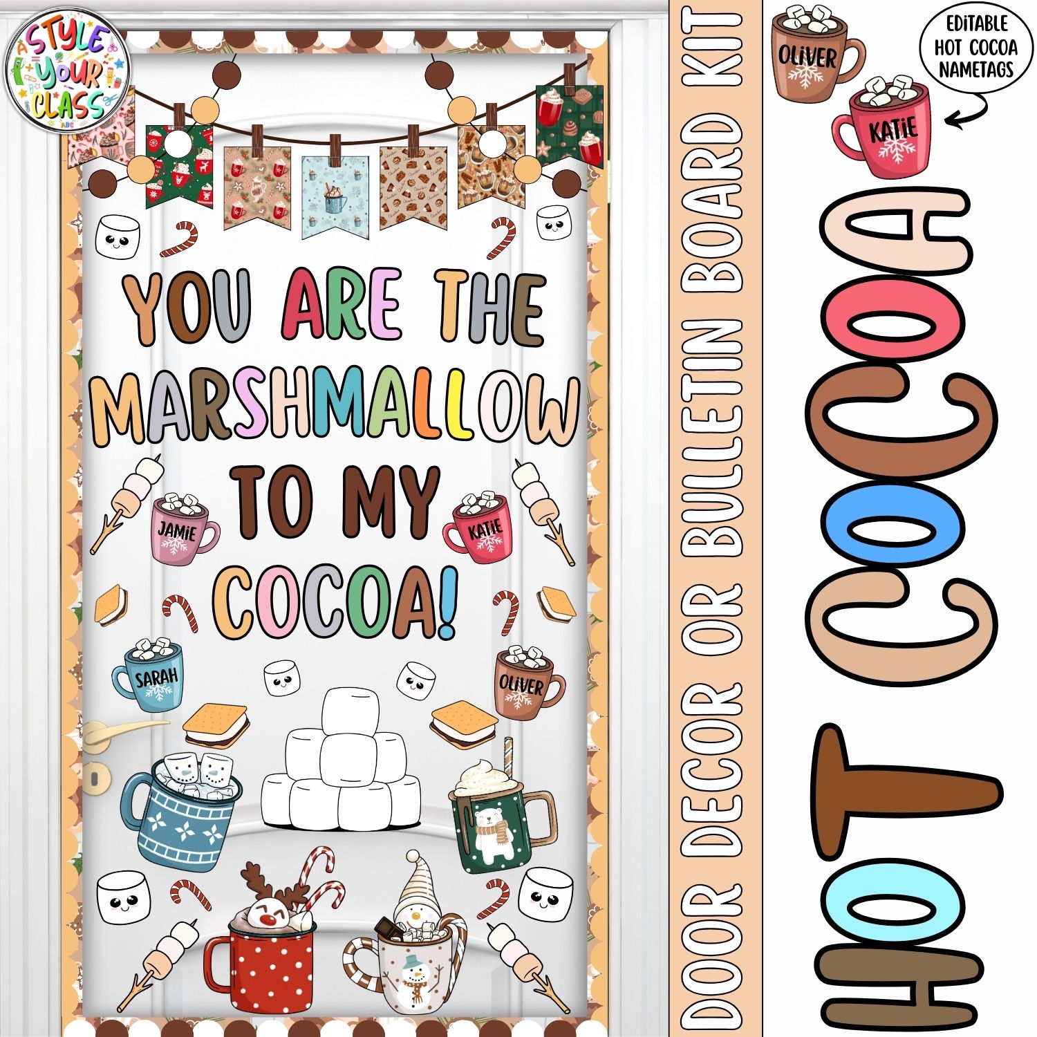 Create the coziest winter vibes in your classroom with this adorable Hot Cocoa Winter Door or Bulletin Board Kit! Packed with smiling marshmallows, warm cocoa mugs, candy canes, and editable name tags, this display brings instant festive cheer your students will adore.