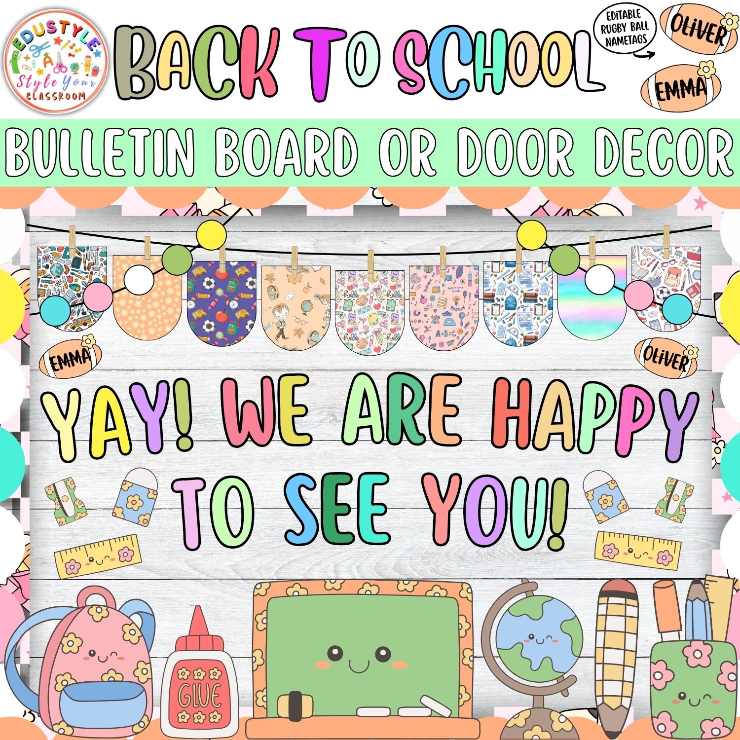 Whether you’re welcoming new students, decorating doors, bulletin boards, or creating inviting spaces, this comprehensive kit ensures your classroom feels bright, cheerful, and ready for learning.